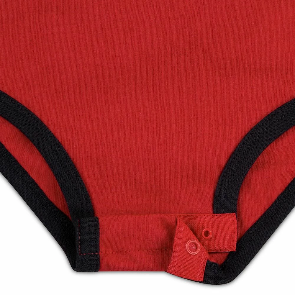- Bodysuit: crewneck, long sleeve, lap shoulder, graphic on chest, snap gusset
