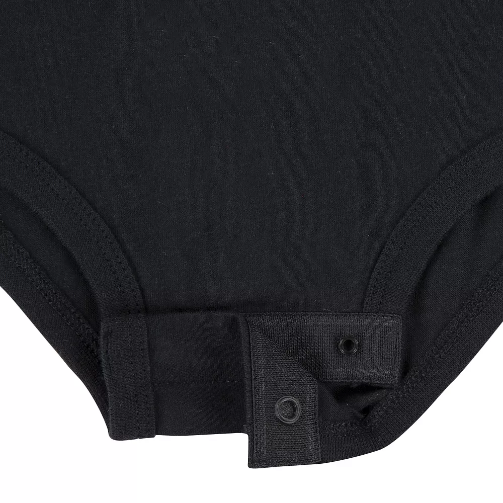 - Bodysuit: long sleeves, lapped ruffled shoulders, ribbed crewneck, snappy tape inseam