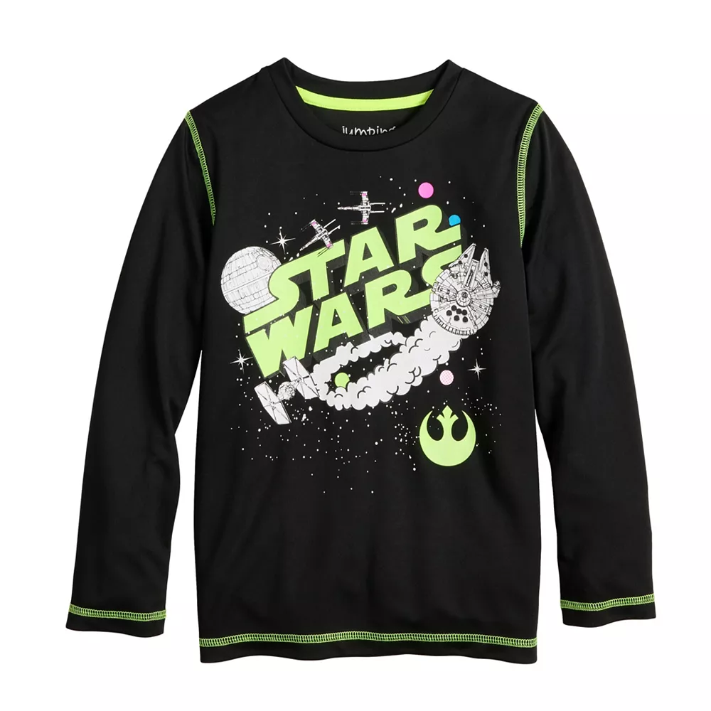 The Force will be with him in this fun, vintage-inspired Star Wars long sleeve tee from Jumping Beans.