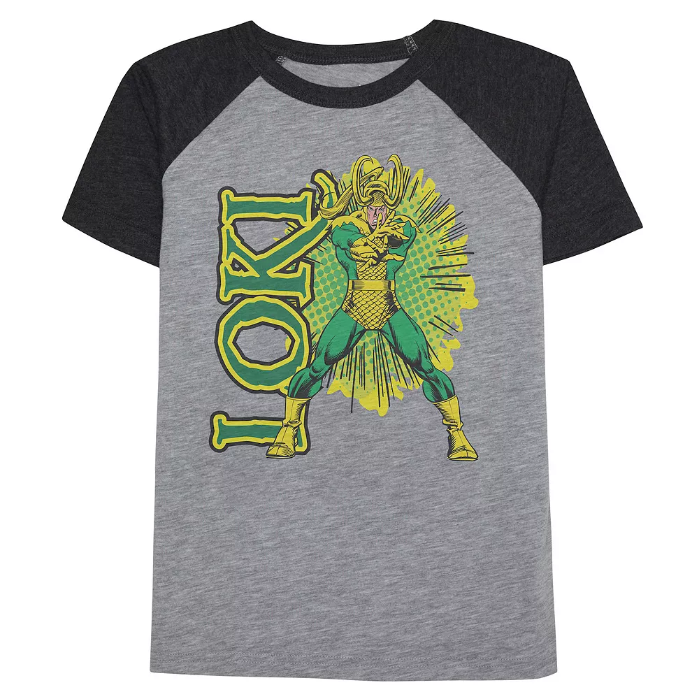 He’ll love his look in this boys’ Loki short raglan sleeve graphic tee.