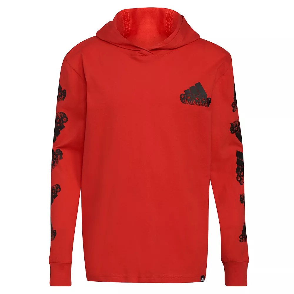 Layer his look with this soft and sporty boys’ adidas 3D logo hooded graphic tee.