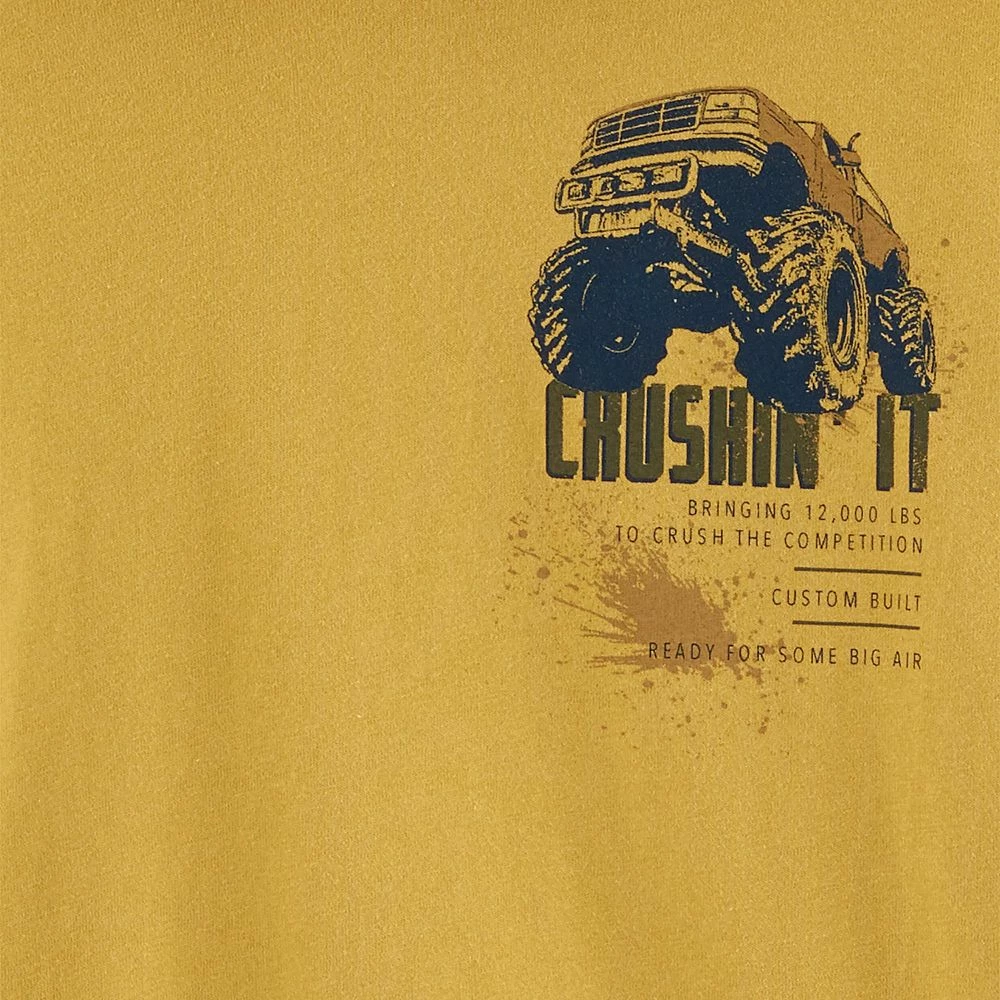 Keep him warm while he chills out in this super soft hooded tee, with sporty graphics on the front and back.
