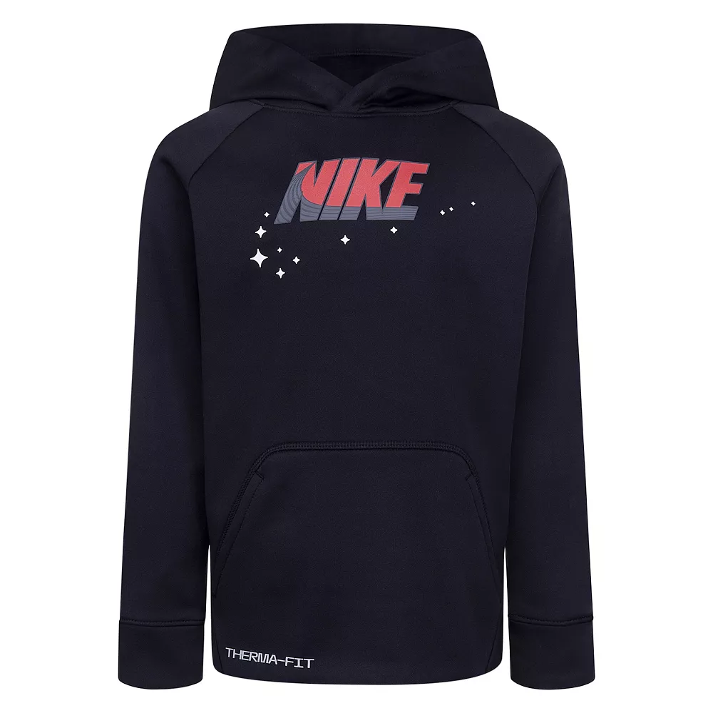Rain or shine, sleet or heat, the game is always on with this versatile boys’ Nike wordmark raglan therma hoodie.