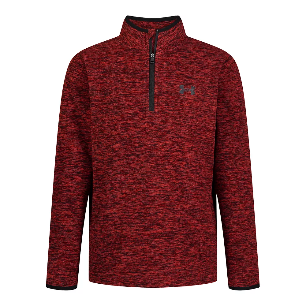 He’ll be comfy and cozy in this classic fleece quarter-zip boys’ pullover from Under Armour.