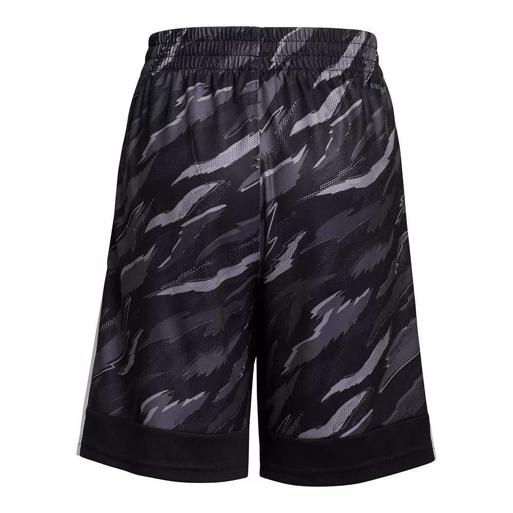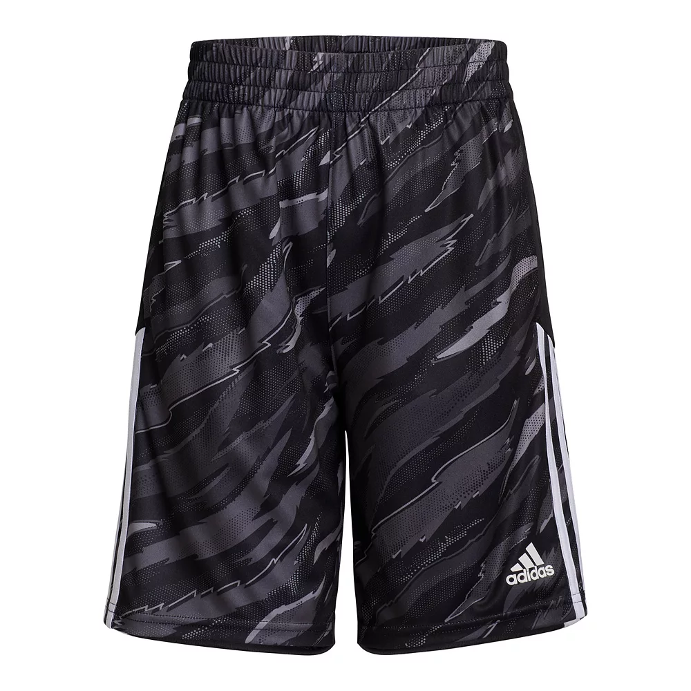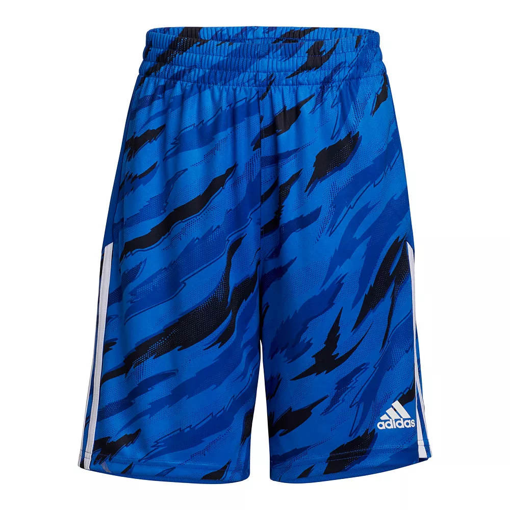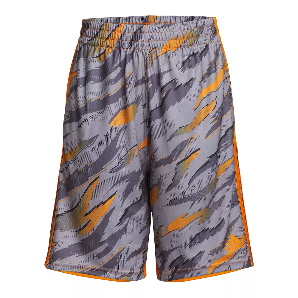 He’s not the shy type. Let him stand out wherever he goes when he wears these boys’ shorts from adidas. An allover tiger camouflage print gives him a wild style while adidas 3-stripes keep his look sporty.