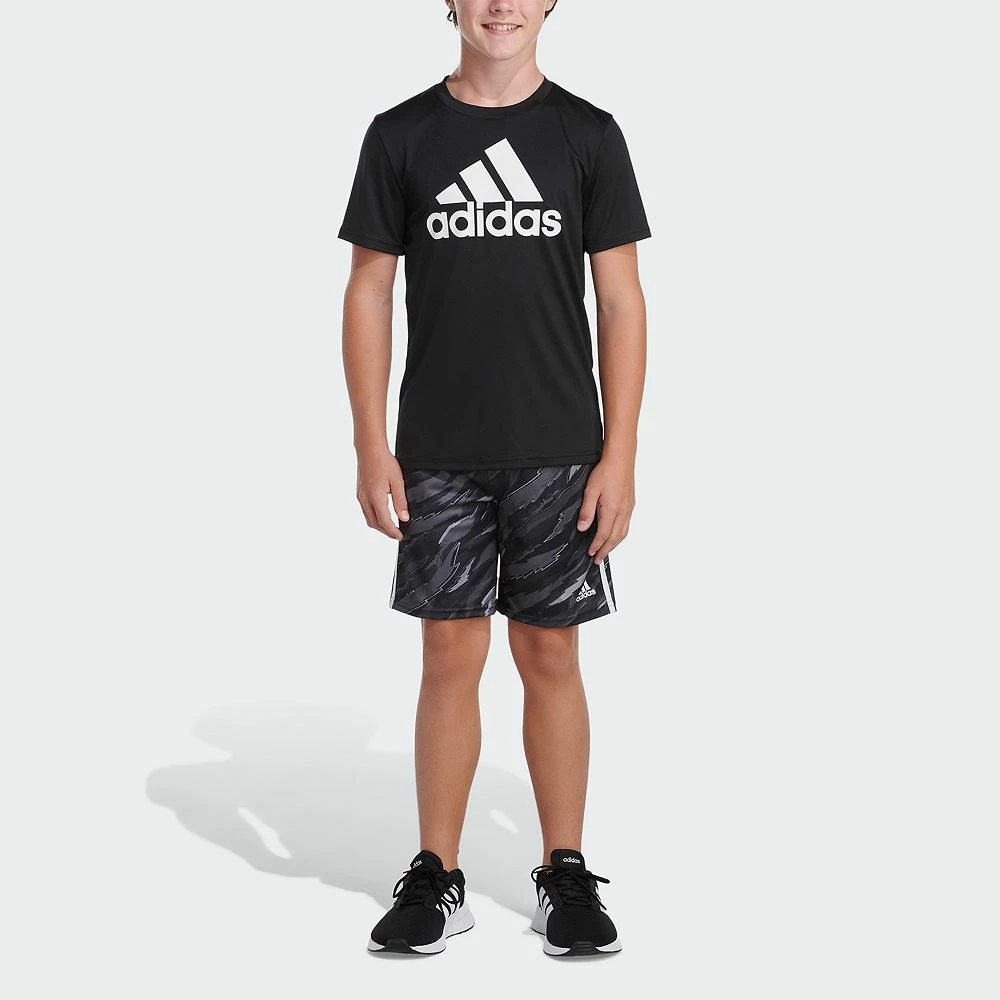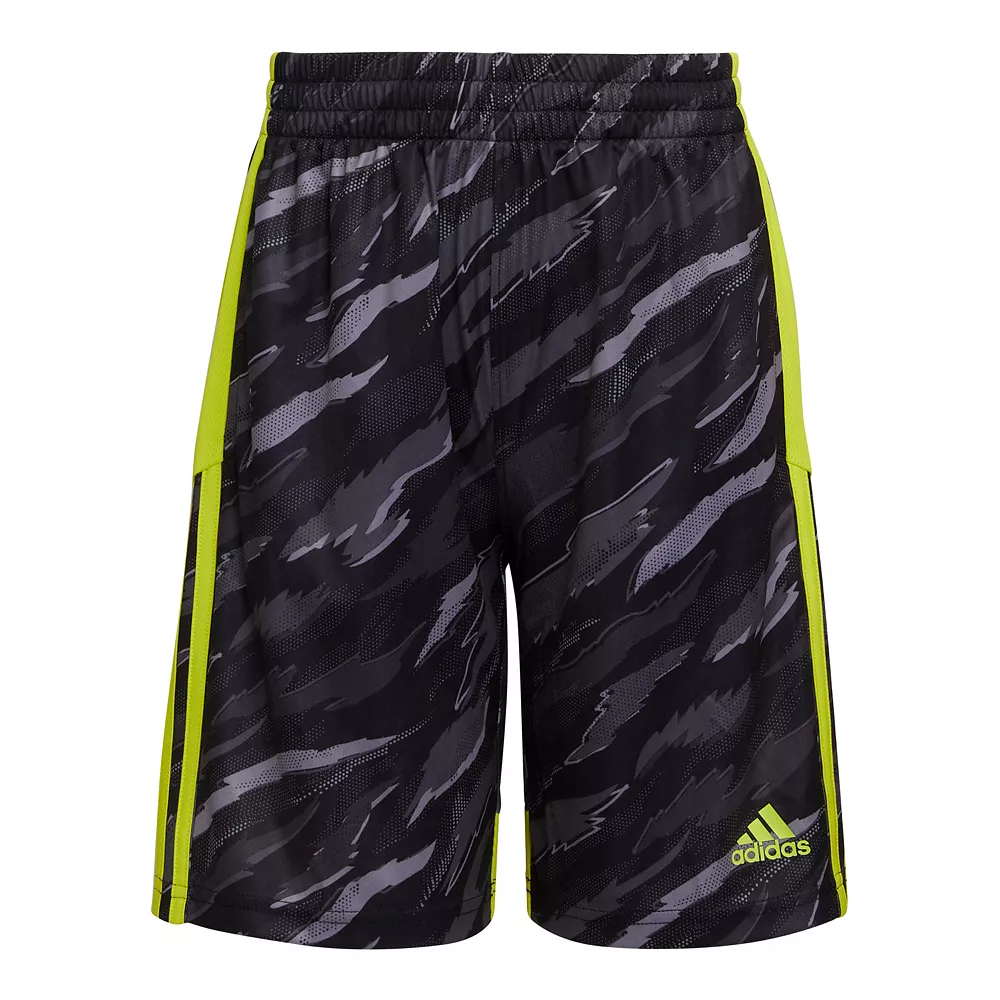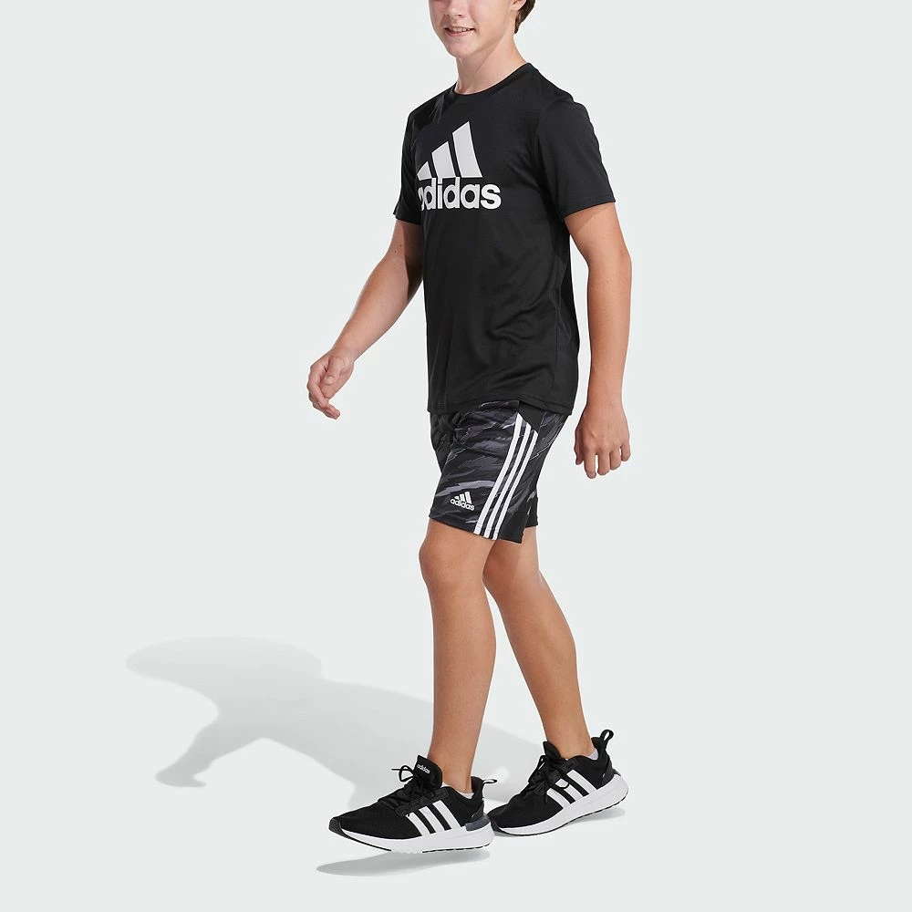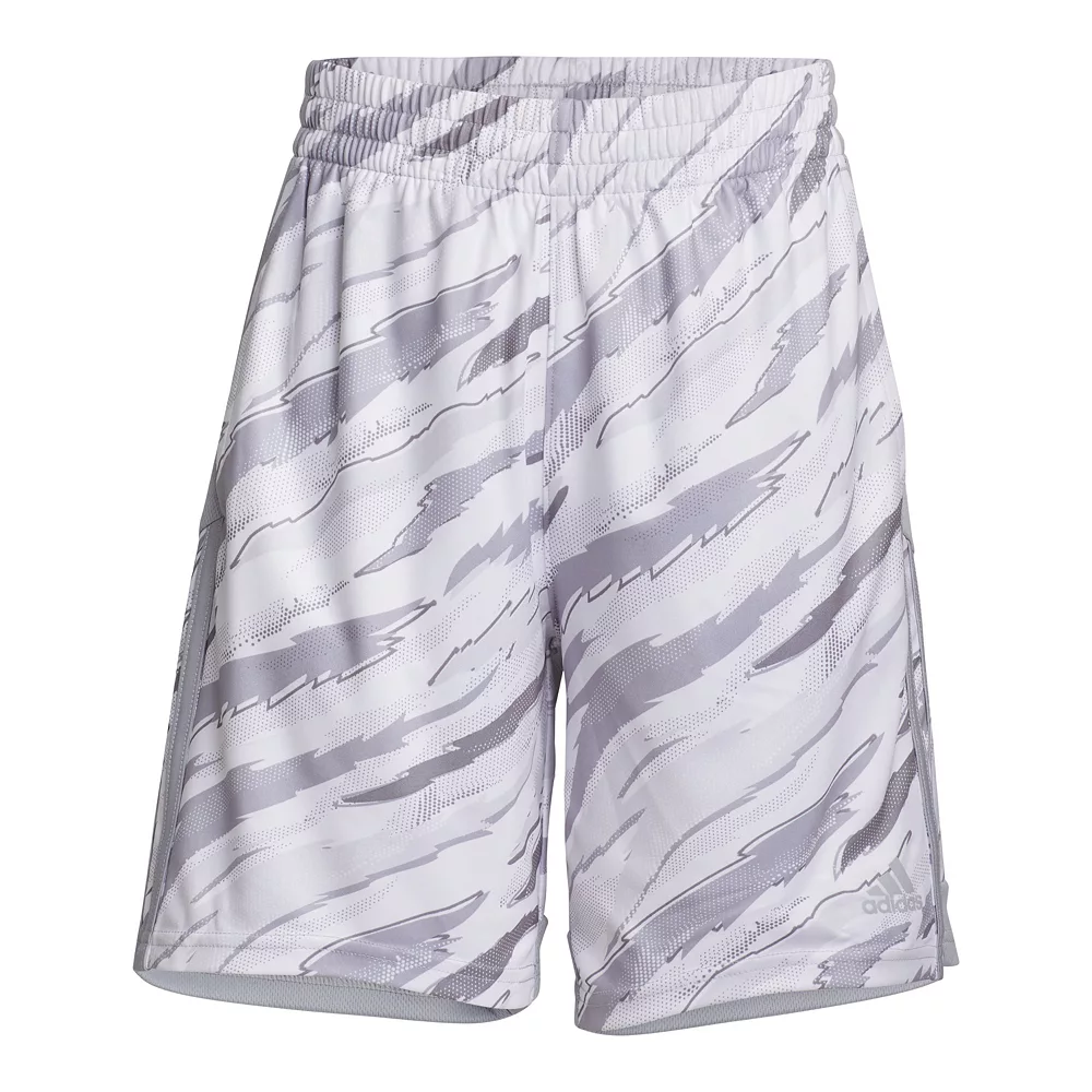 He’s not the shy type. Let him stand out wherever he goes when he wears these boys’ shorts from adidas. An allover tiger camouflage print gives him a wild style while adidas 3-stripes keep his look sporty.
