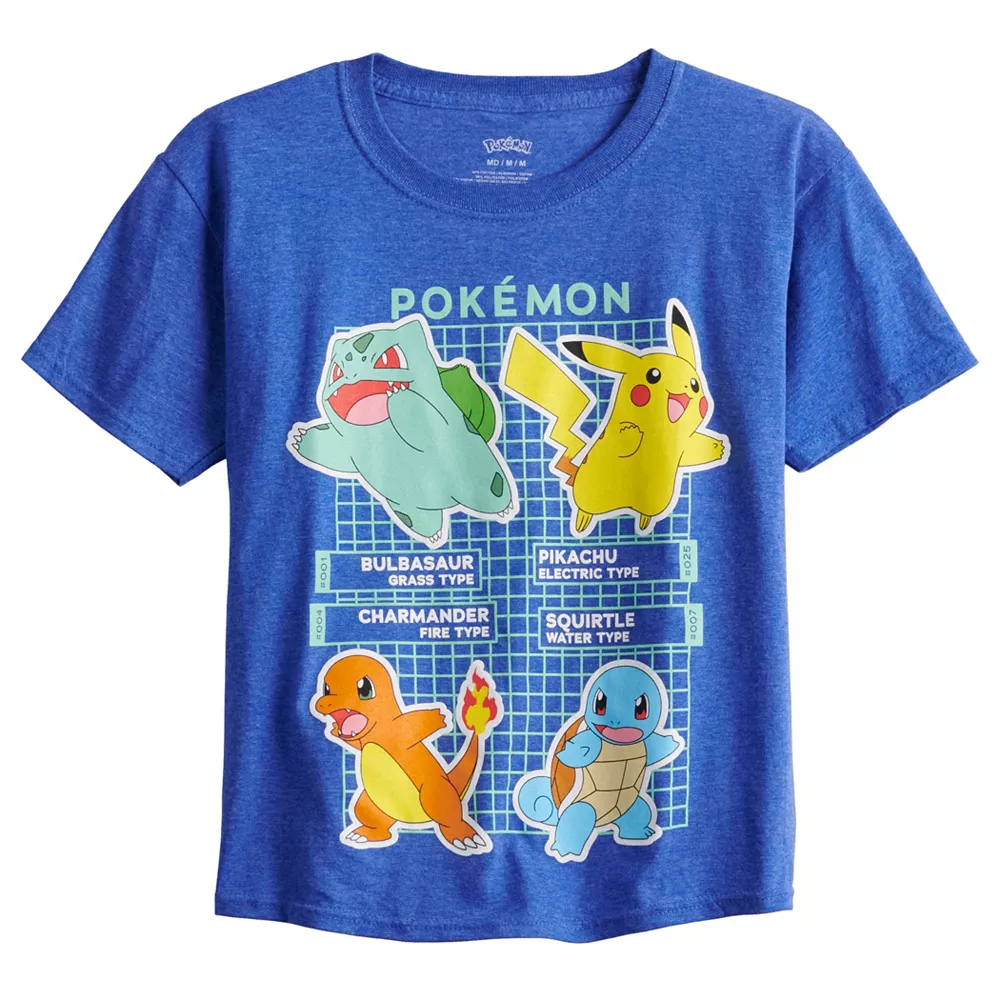 Featuring his favorite Pokemon, he’ll love wearing this boys’ Pikachu, Bulbasaur, Charmander and Squirtle graphic tee.