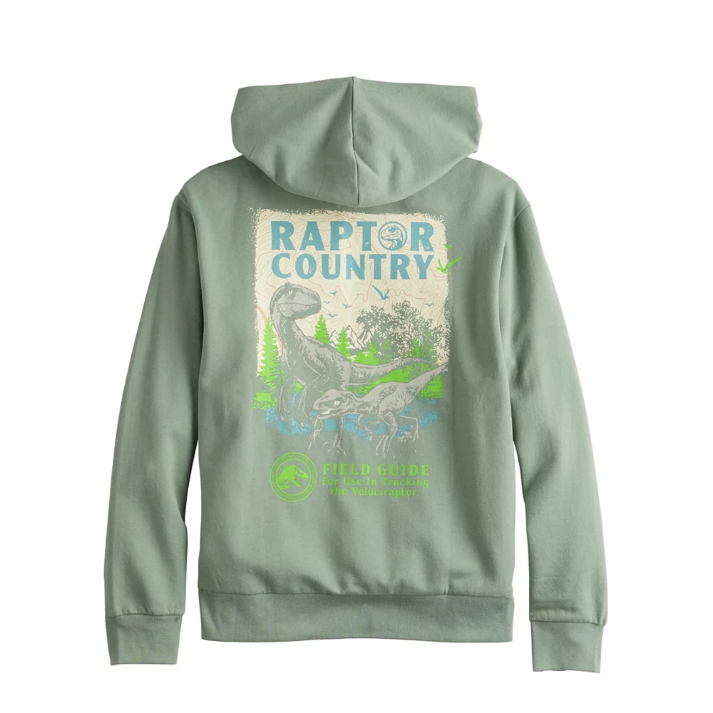 Your dinosaur expert will be ready for anything with this boys’ Jurassic Park “Raptor Country” hoodie.