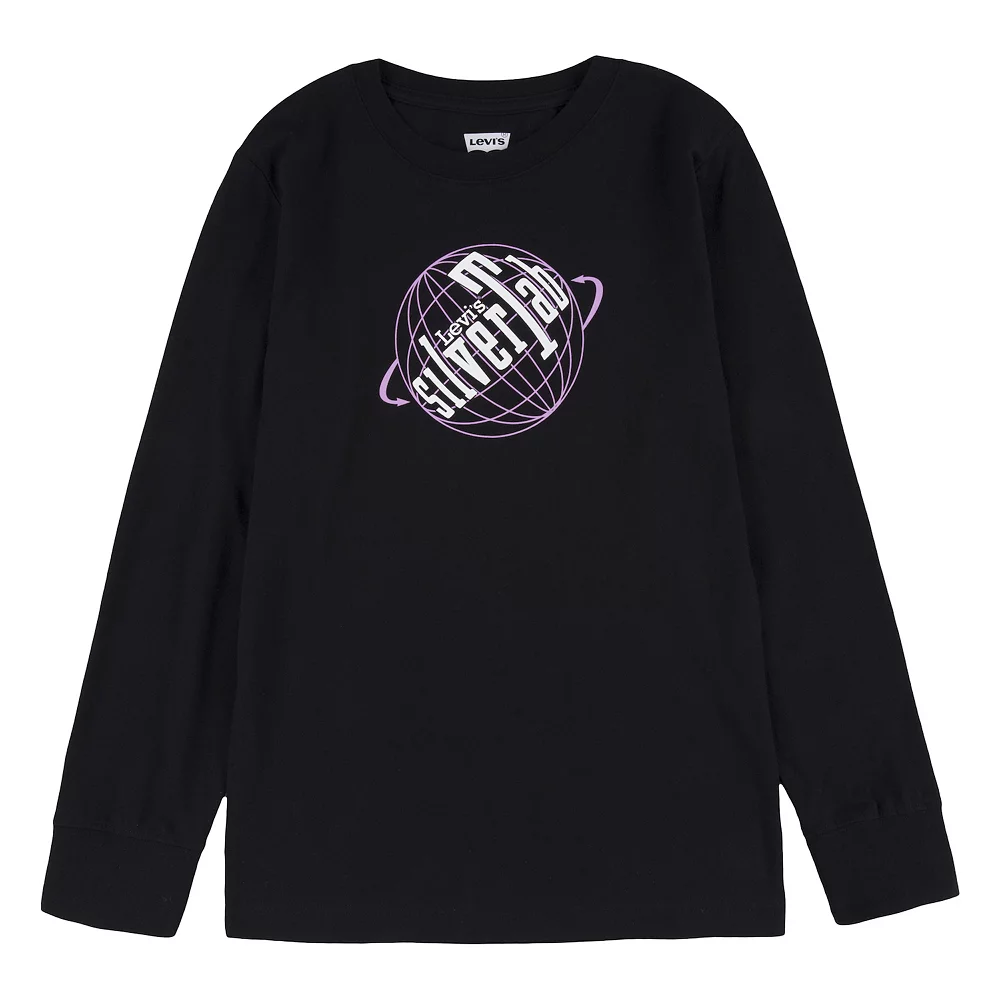 You can’t go wrong with this boys’ Levi’s SilverTab Globe Long Sleeve Graphic Tee.