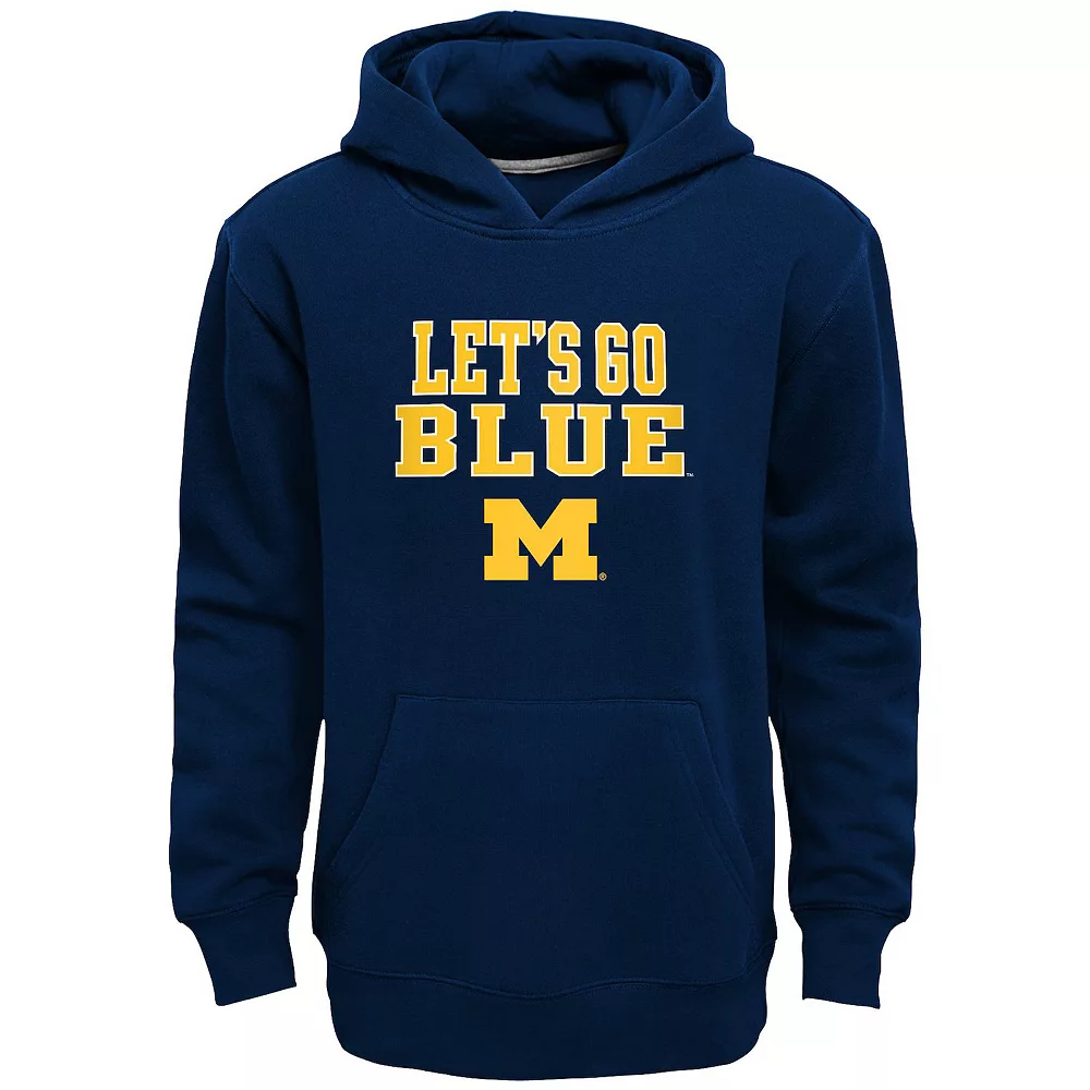 Showing off his team pride comes easy, and comfy, when he gears up with this Michigan Wolverines boys’ fleece hoodie.