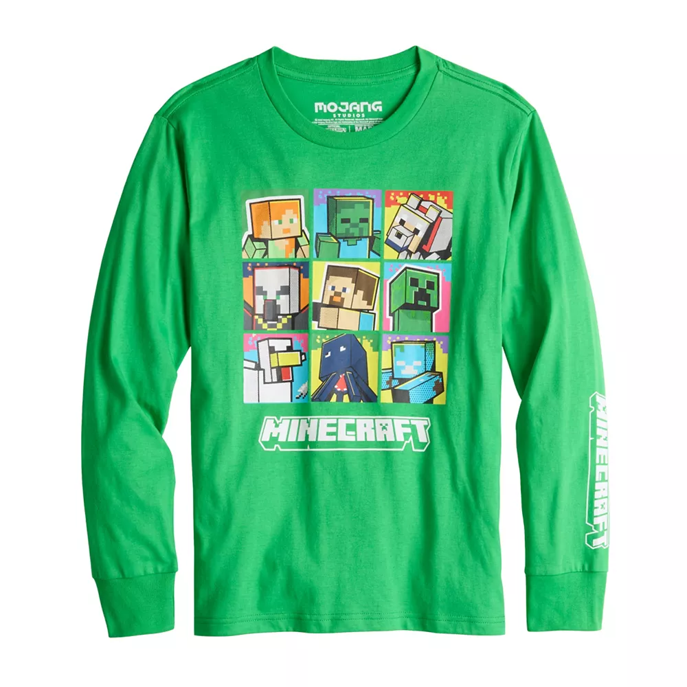 He’ll love showing off his personal style with this boys’ Minecraft Characer Squares Long Sleeve Graphic Tee.
