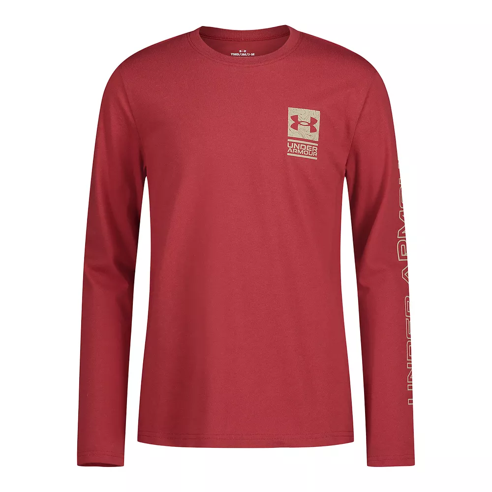 Under Armour defines cool and athletic style with this boys’ long-sleeved graphic tee.