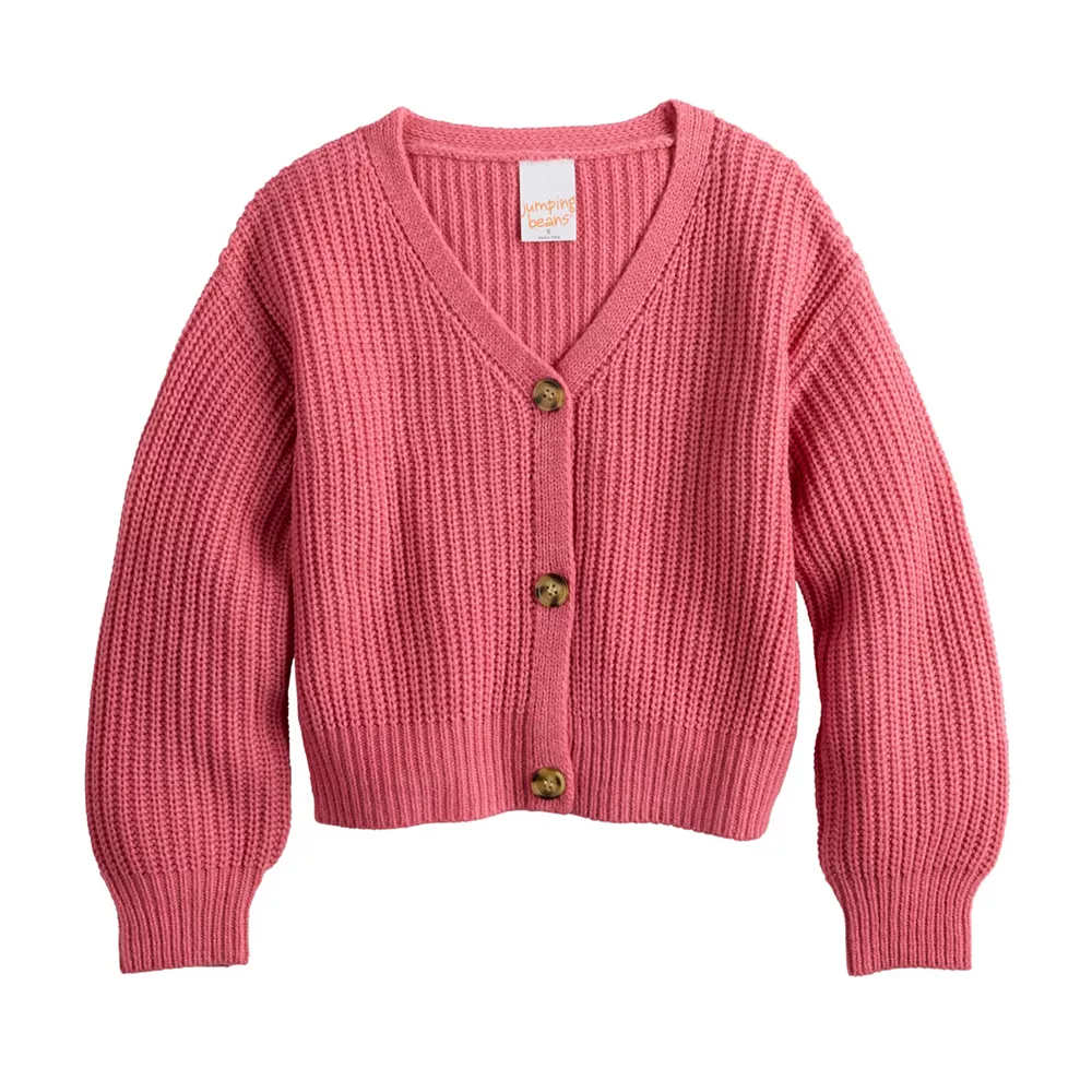 Give her cool weather wardrobe a cozy refresh with this chunky knit girls’ cardigan from Jumping Beans.