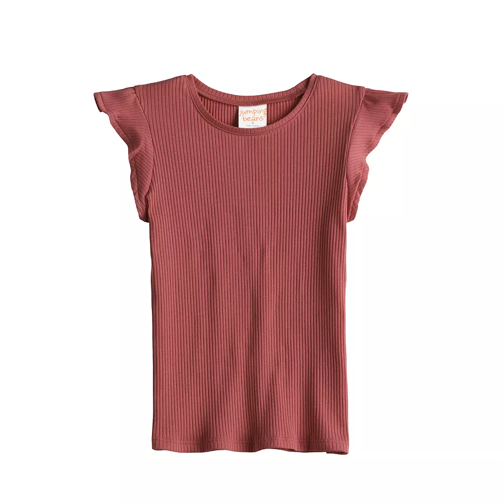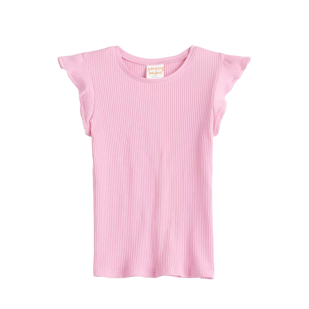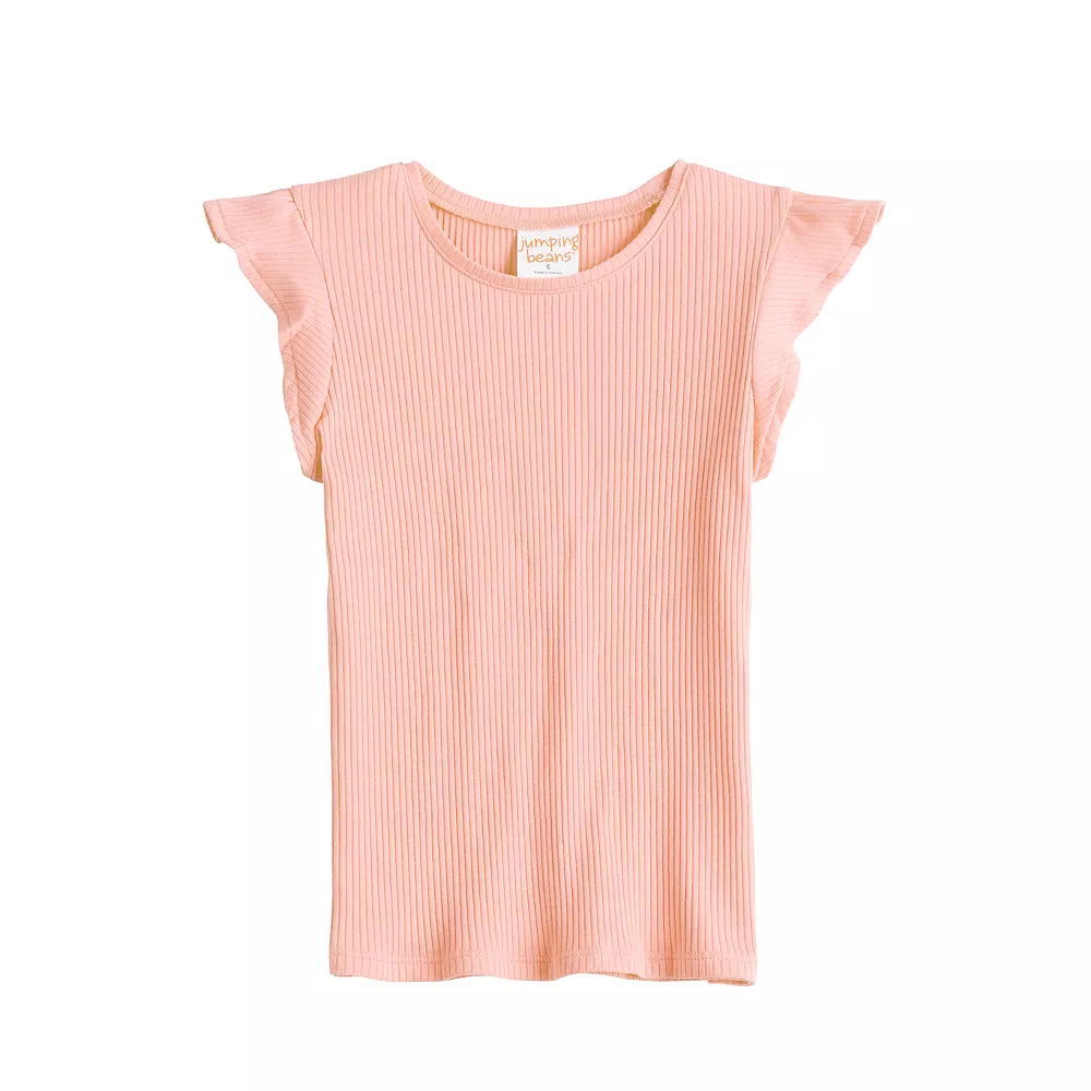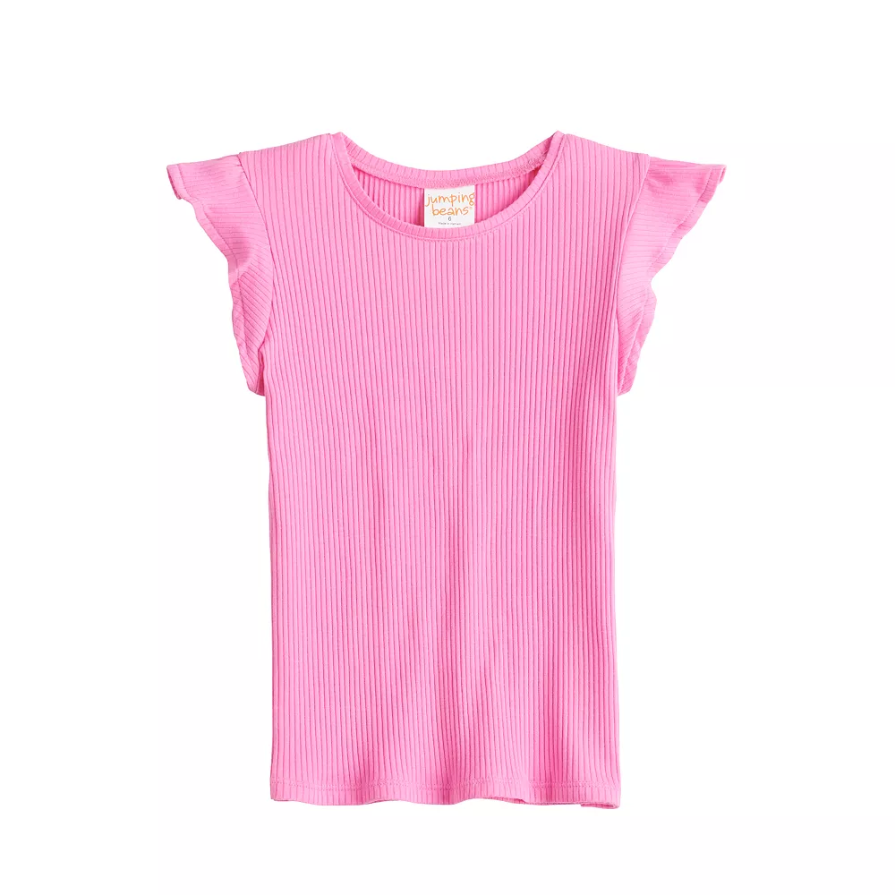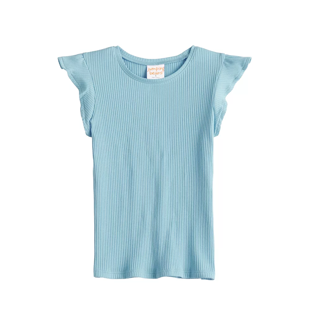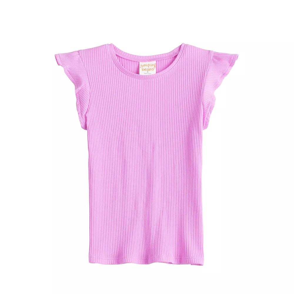 Dress up her basics wardrobe with this girls’ ribbed flutter sleeve tee from Jumping Beans.
