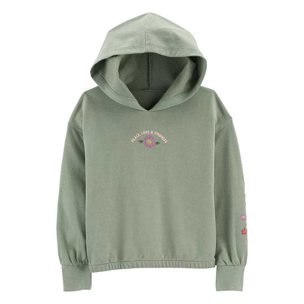 Keep her warm while she chills out in this cute girls’ Carter’s floral French terry hoodie.