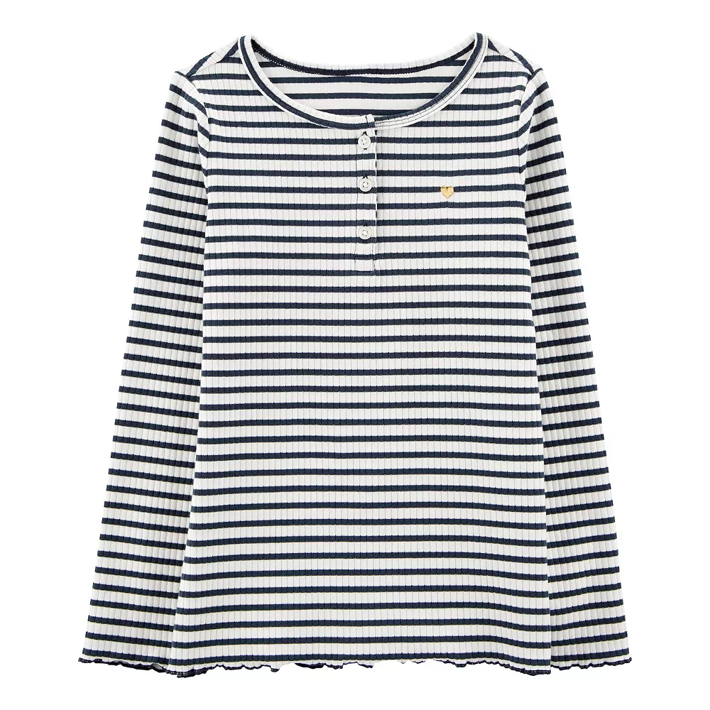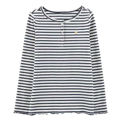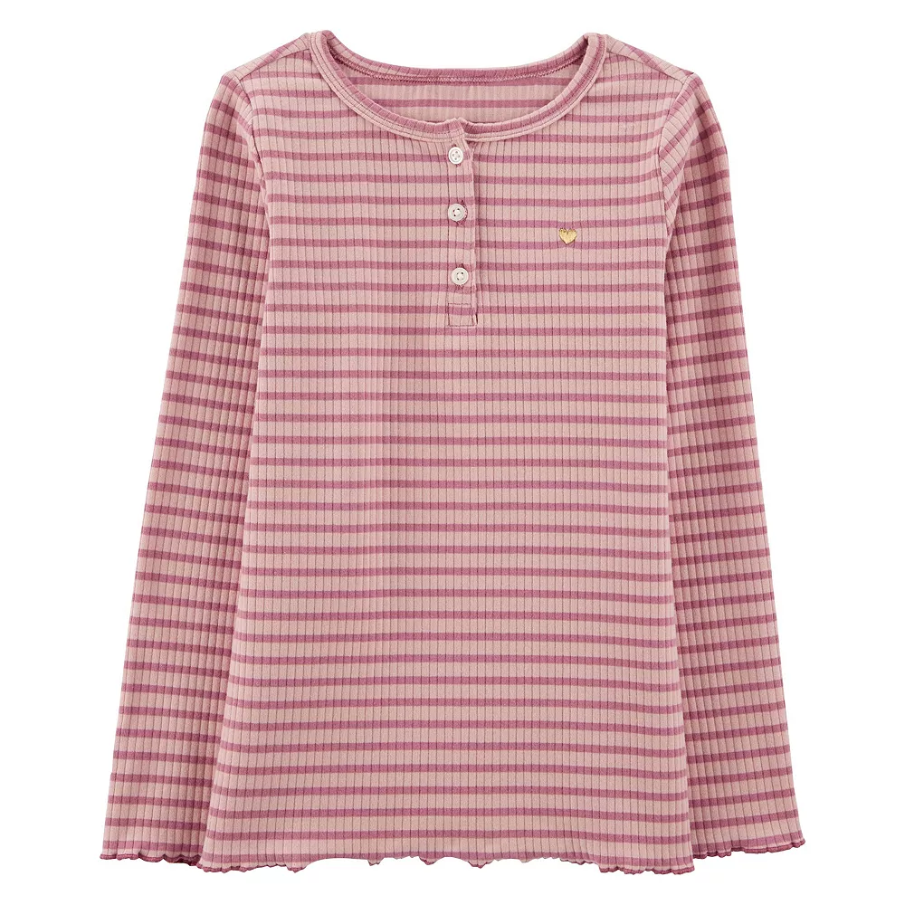 Give her wardrobe a refresh with this girls’ striped lettuce edge henley tee from Carter’s.