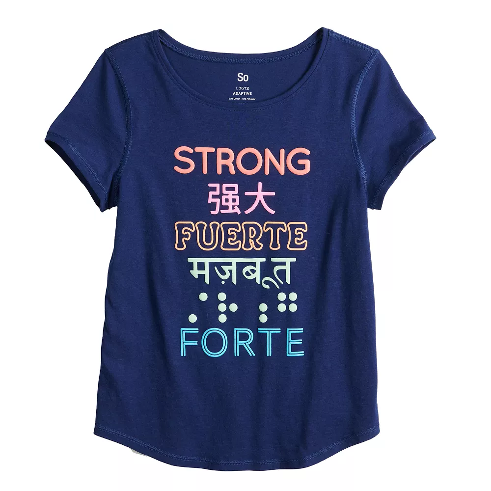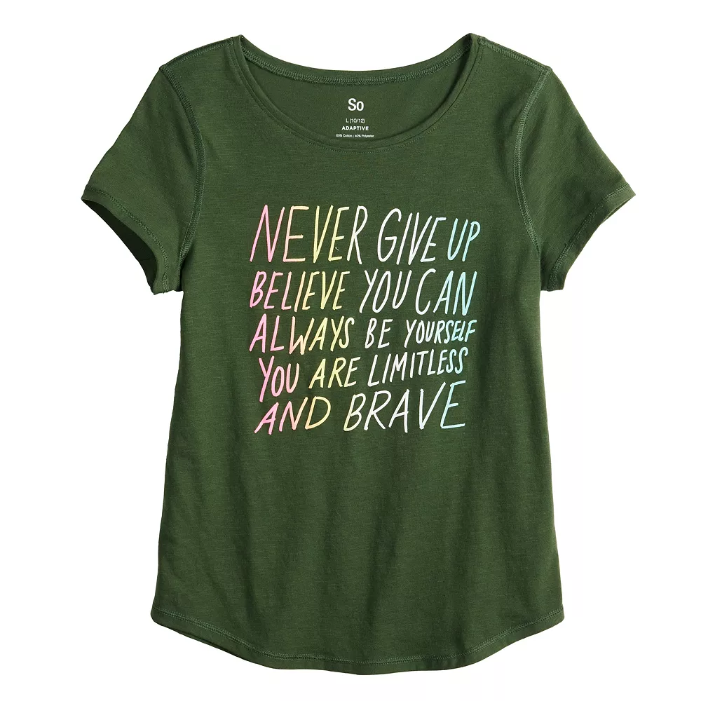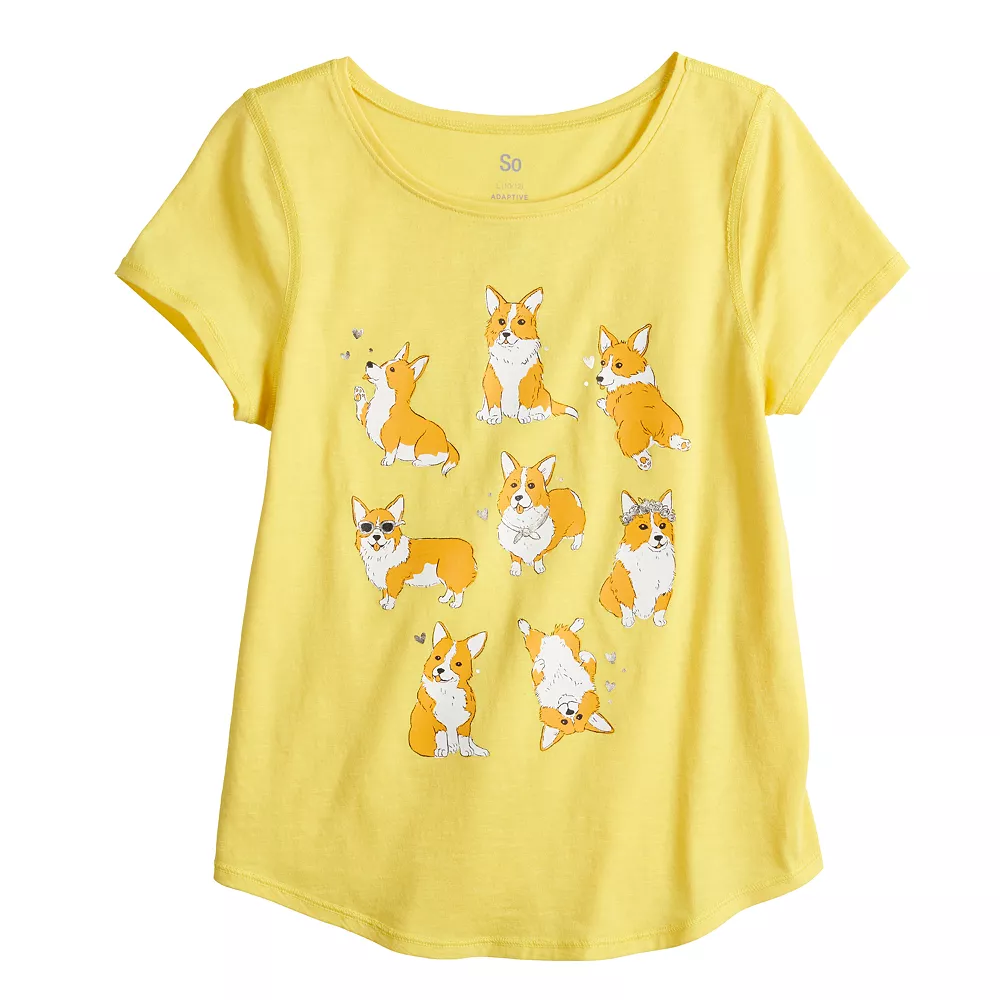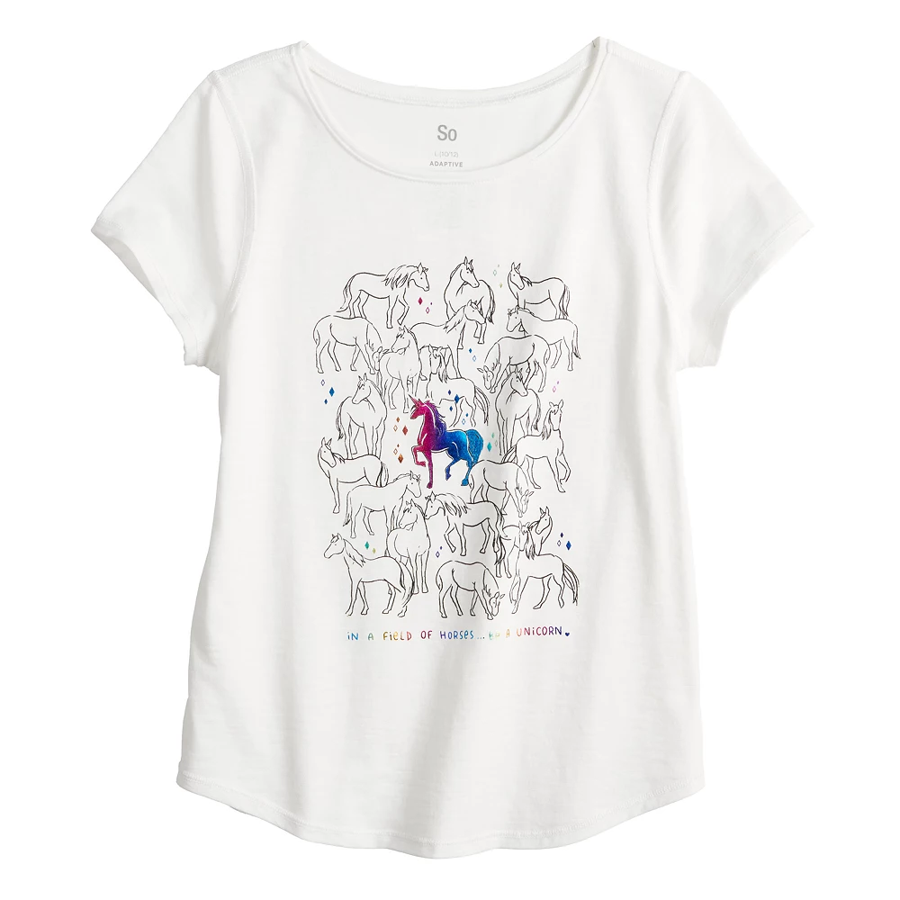 Featuring a fun graphic, she’ll love wearing this girls’ SO Favorite tee.