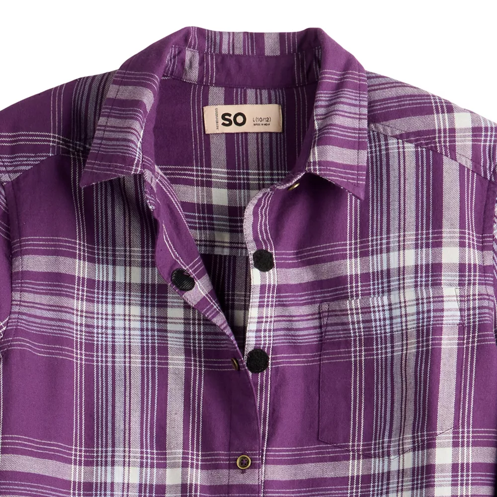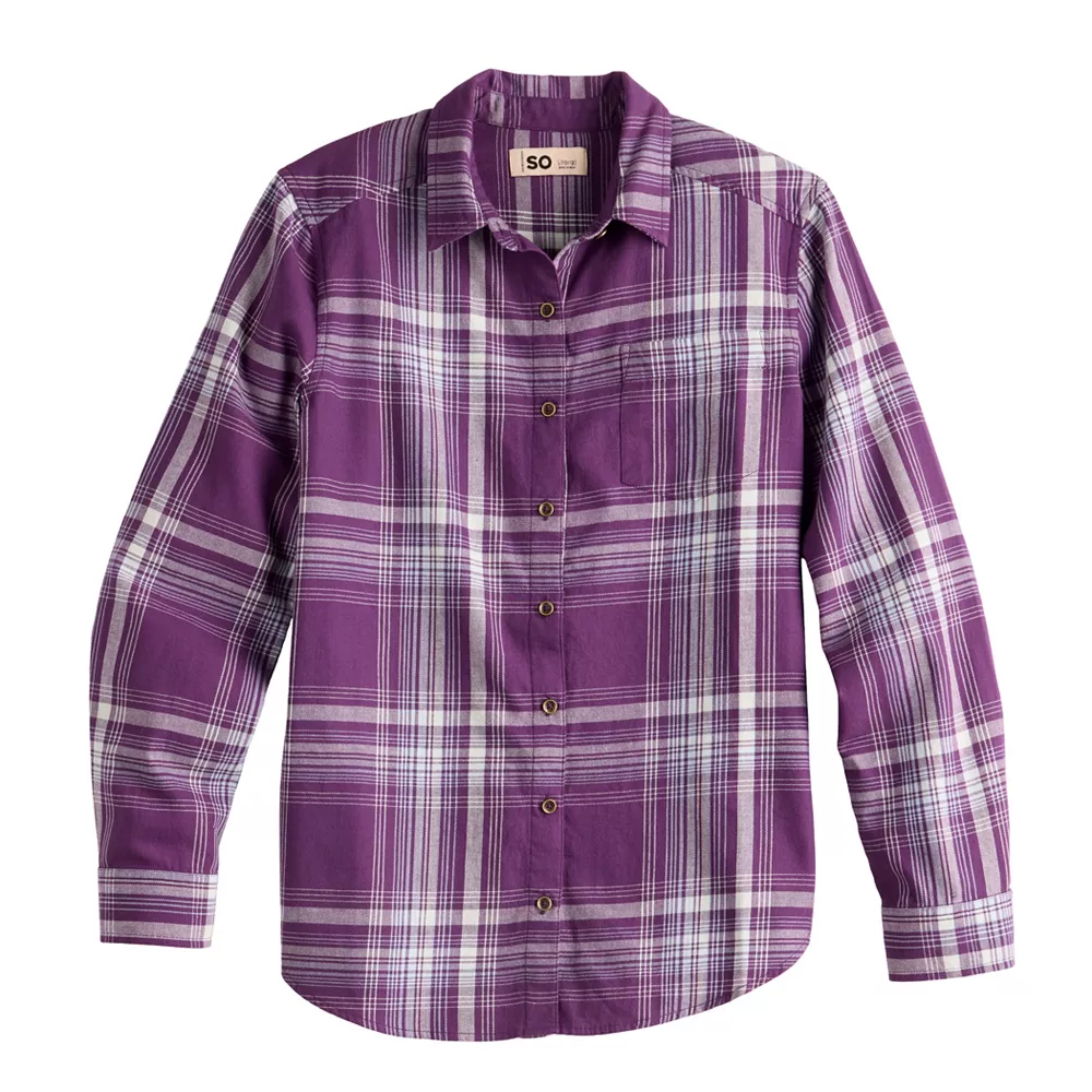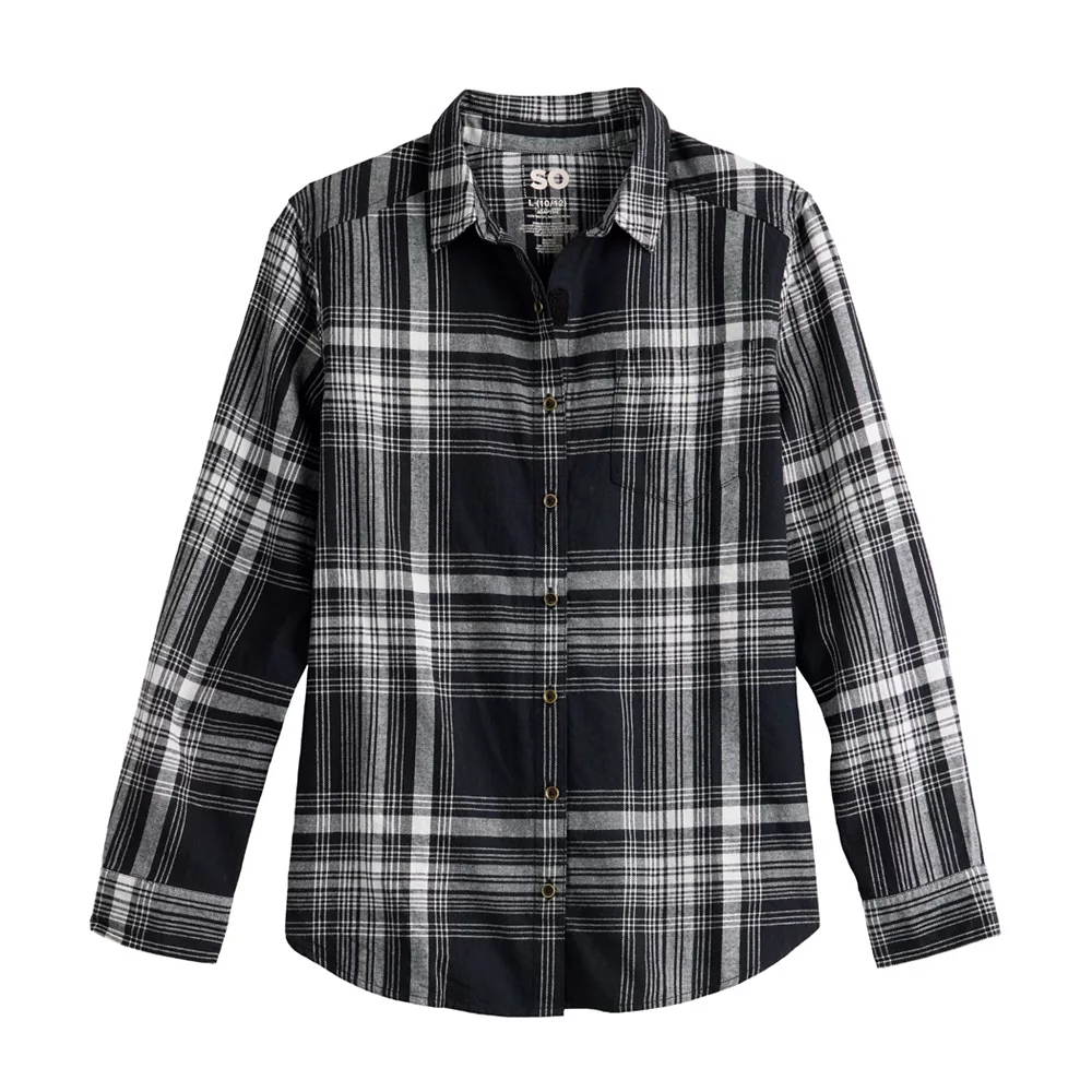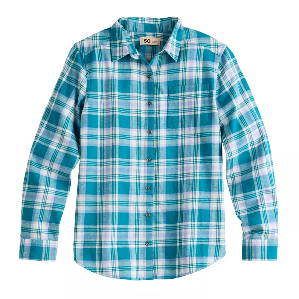She’ll love the casual yet trendy style of this girls Must-Have plaid boyfriend button-up shirt from SO.
