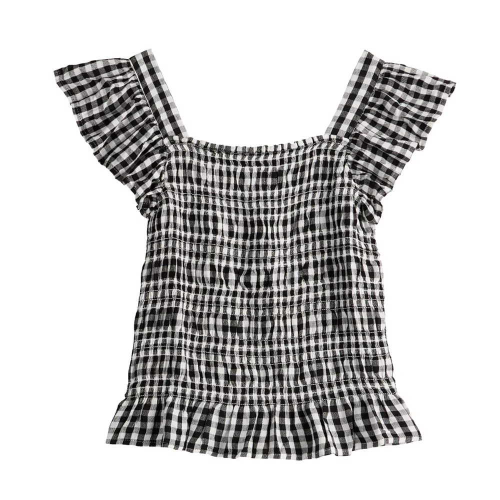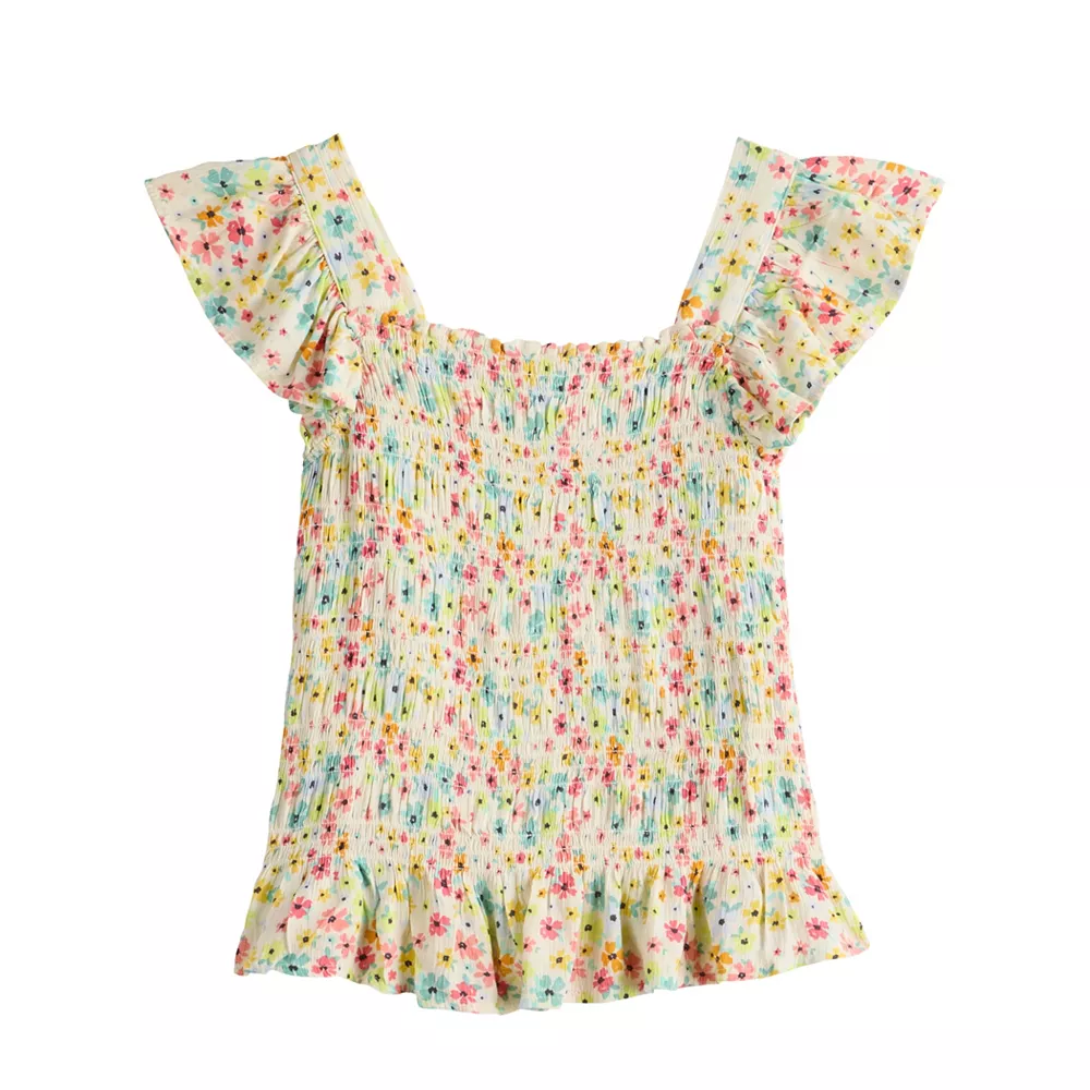 She’ll love her look in this vintage-inspired girls’ ruffle sleeve crinkle gauze tank top from SO.