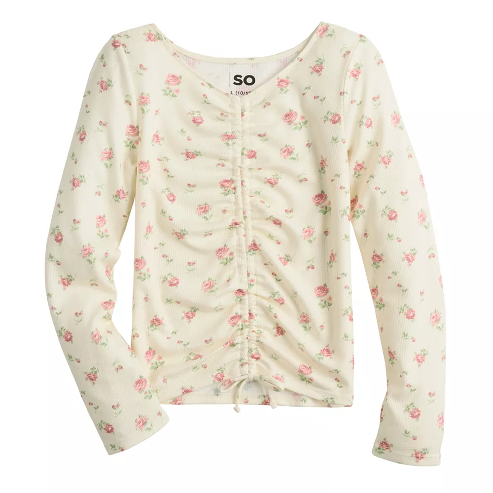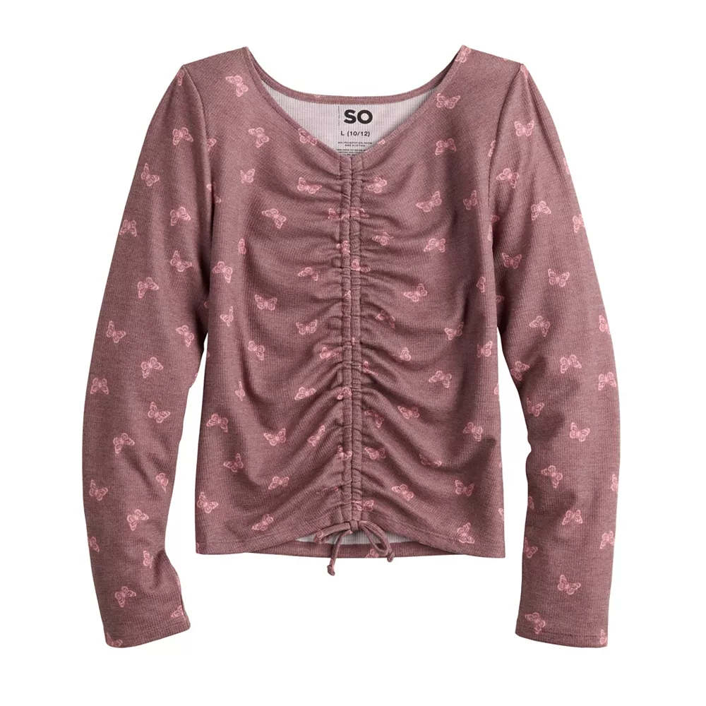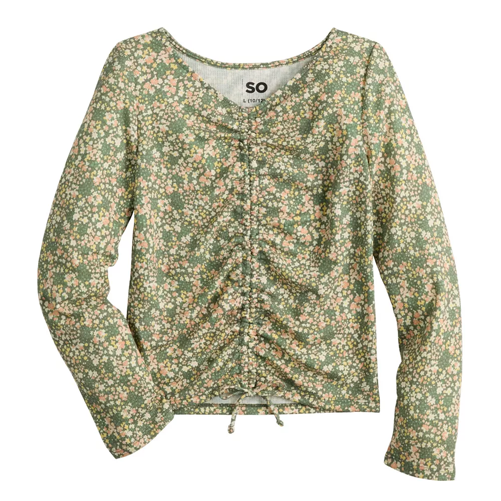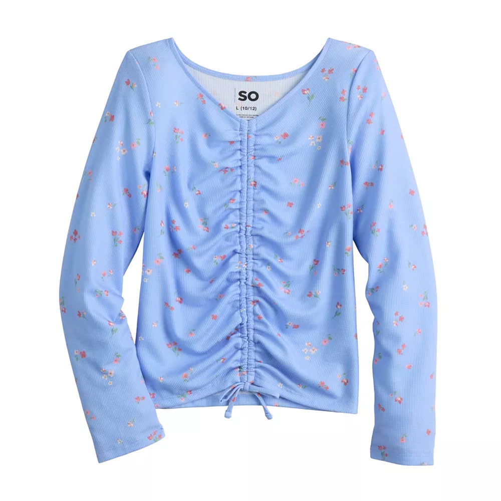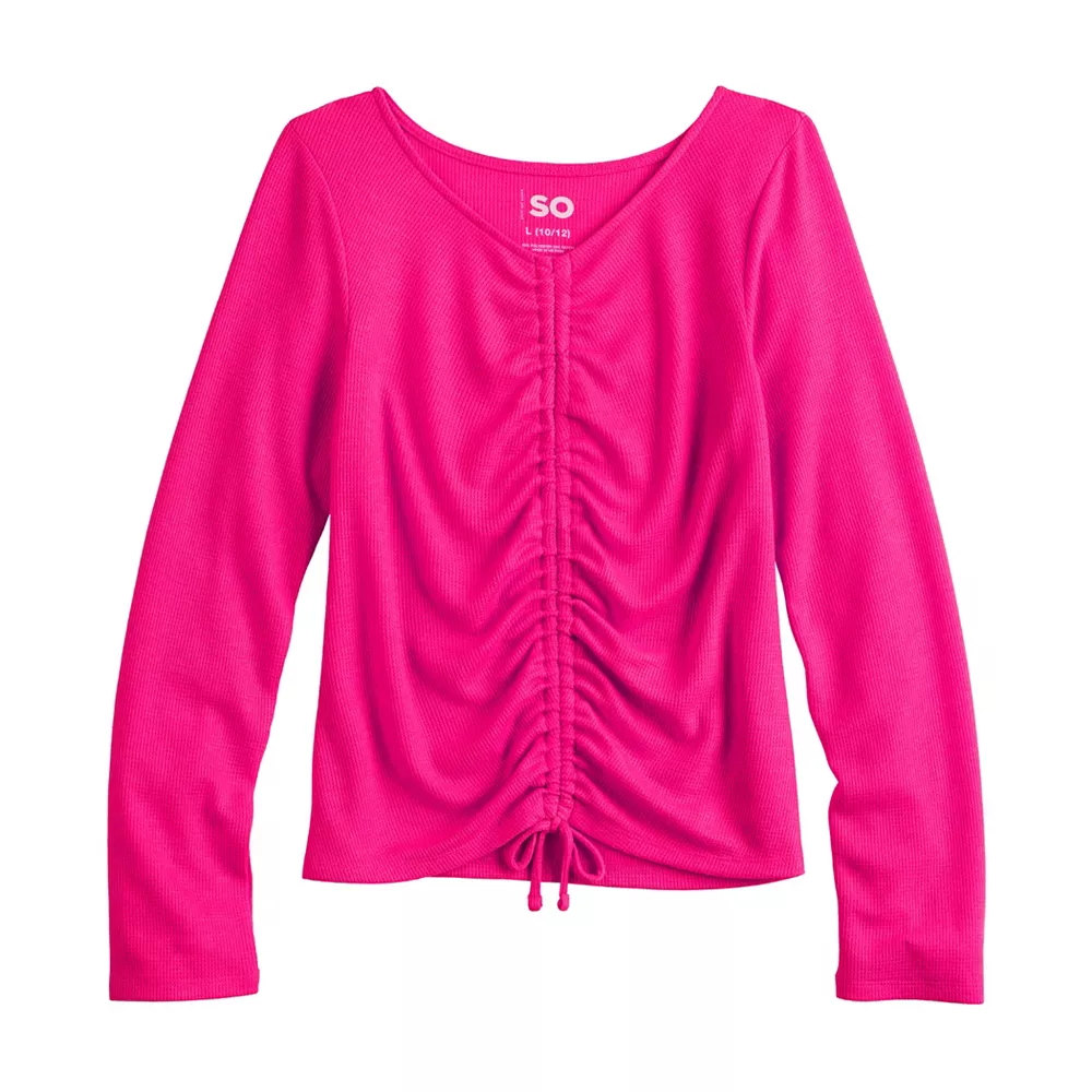 Add a touch of wow factor to her everyday wardrobe with this girls’ cinch front tee from SO.
