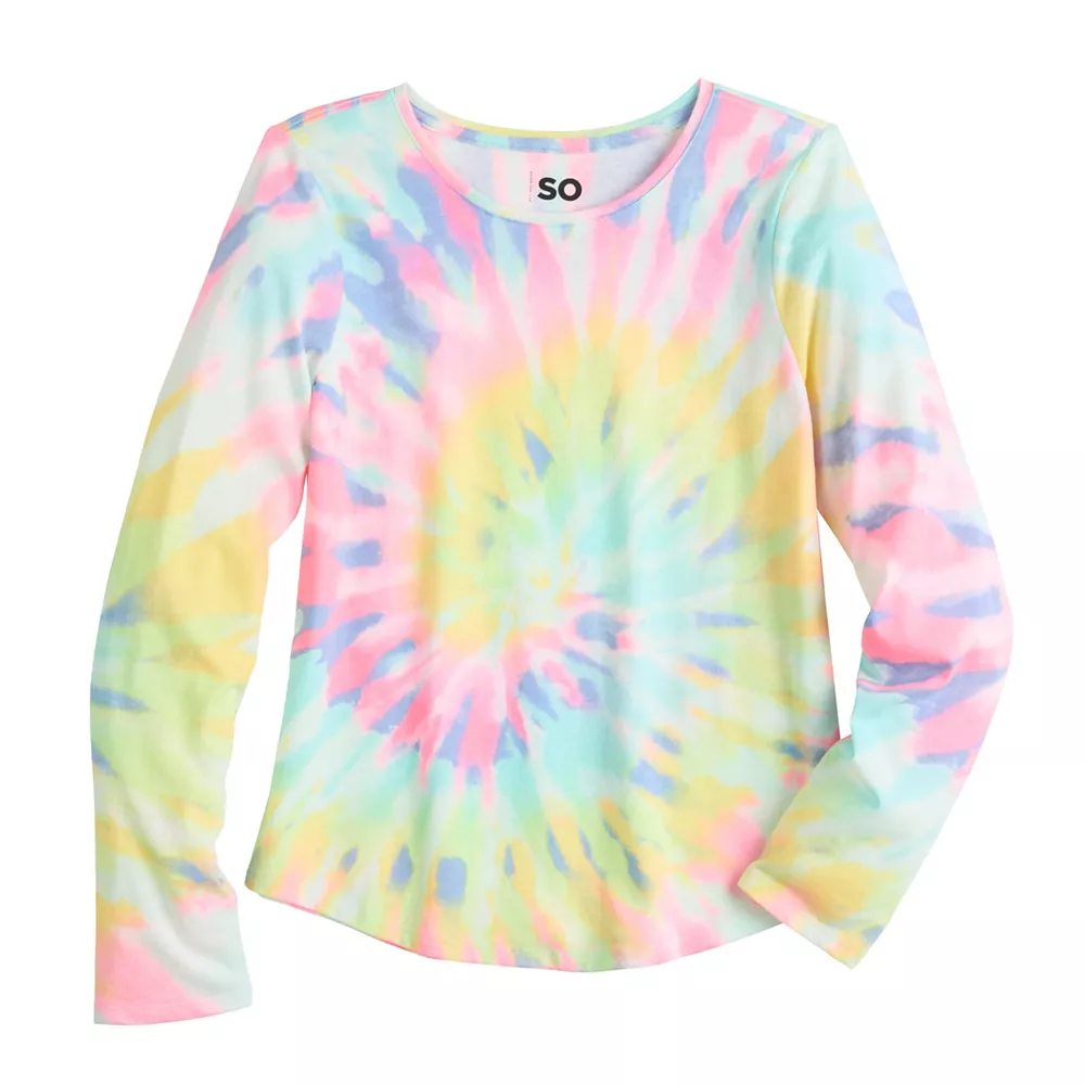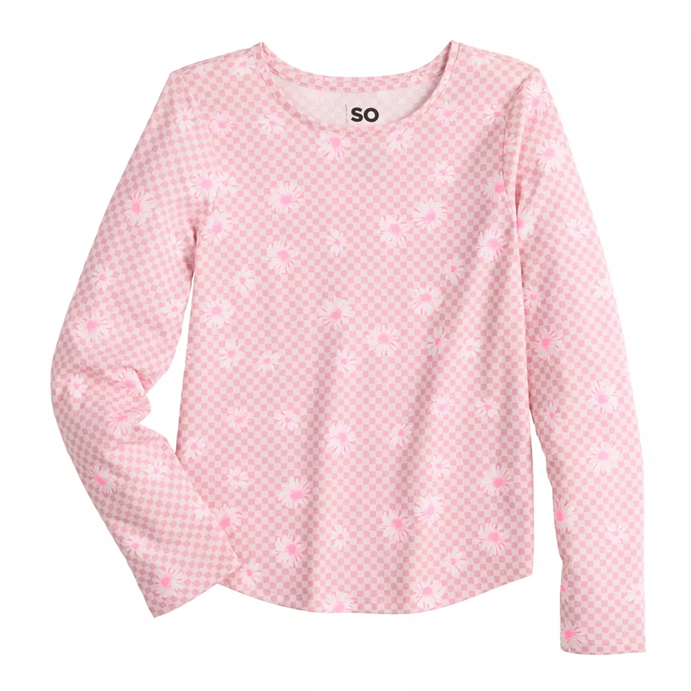 She’ll love her look in this ultra-comfy girls’ patterned long sleeve tee from SO.