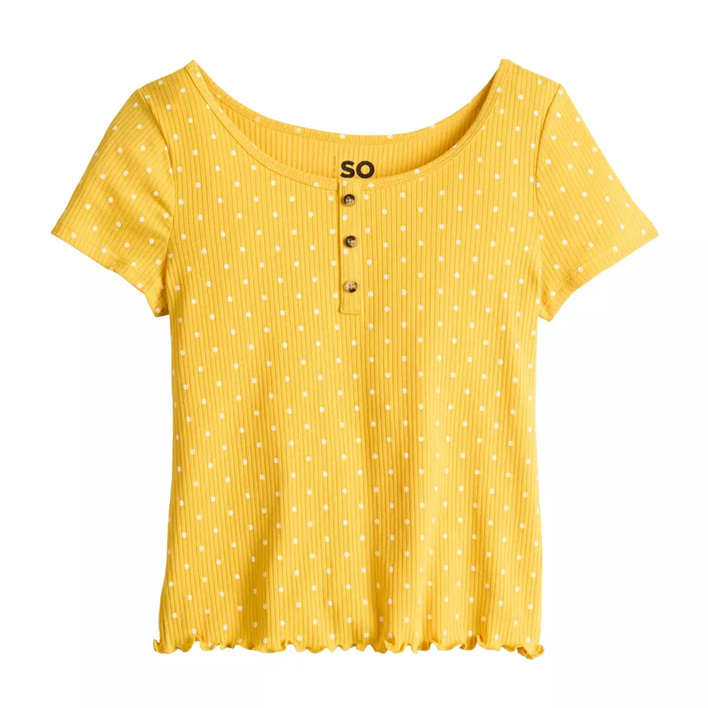 Featuring sweet ruffles and a henley silhouette, she’ll love this girls’ SO tee.