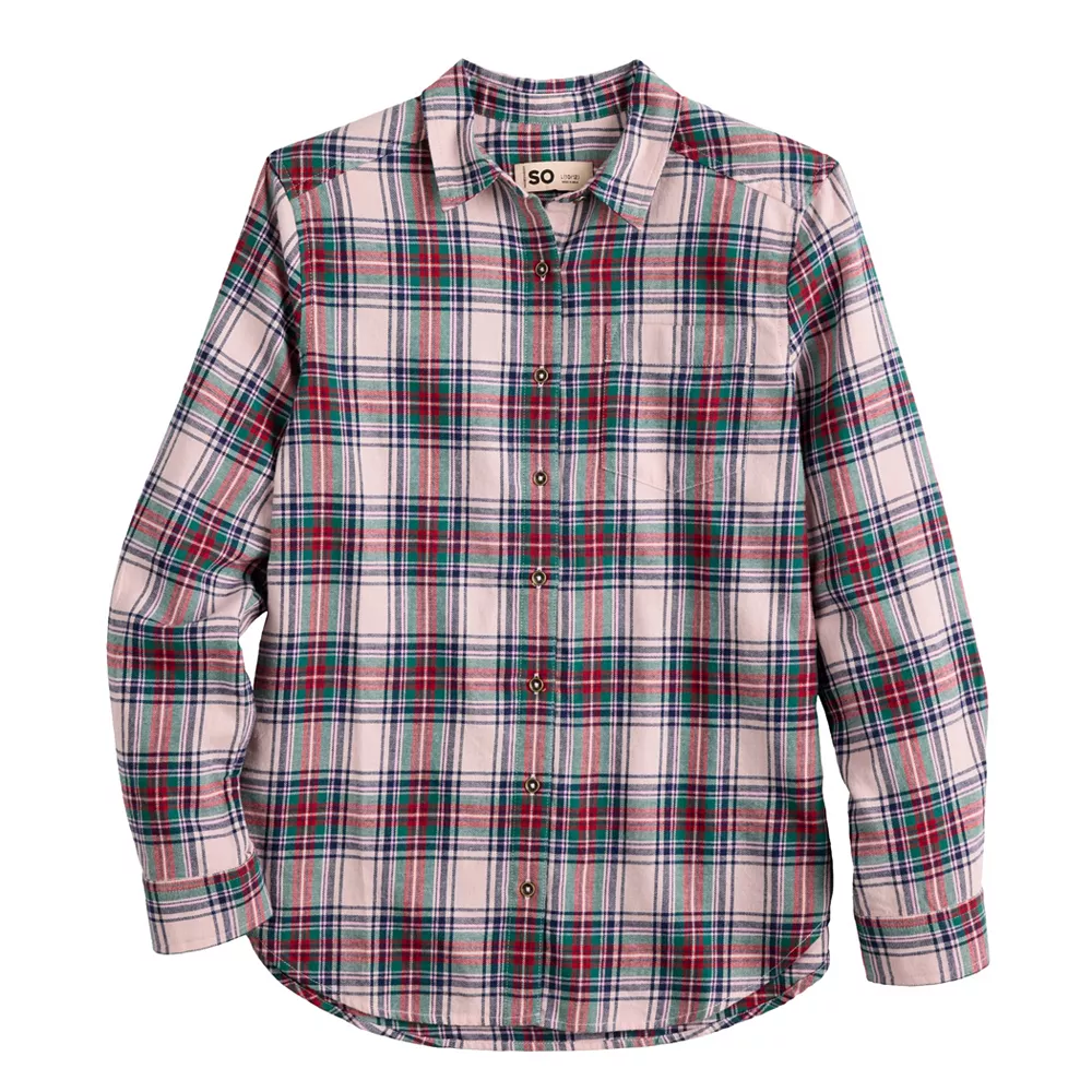 Girls 6-20 SO® Must-Have Flannel Boyfriend Shirt in Regular & Plus Size