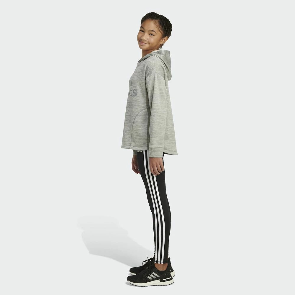 Pure comfort. Total adidas. This girls’ fleece hoodie has her covered. The big Badge of Sport logo bumps up her style points with a silver metallic shimmer. Dirt won’t matter because it’s easy to wash and wear over and over.