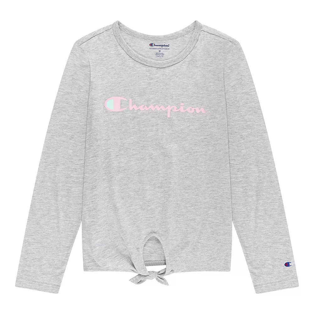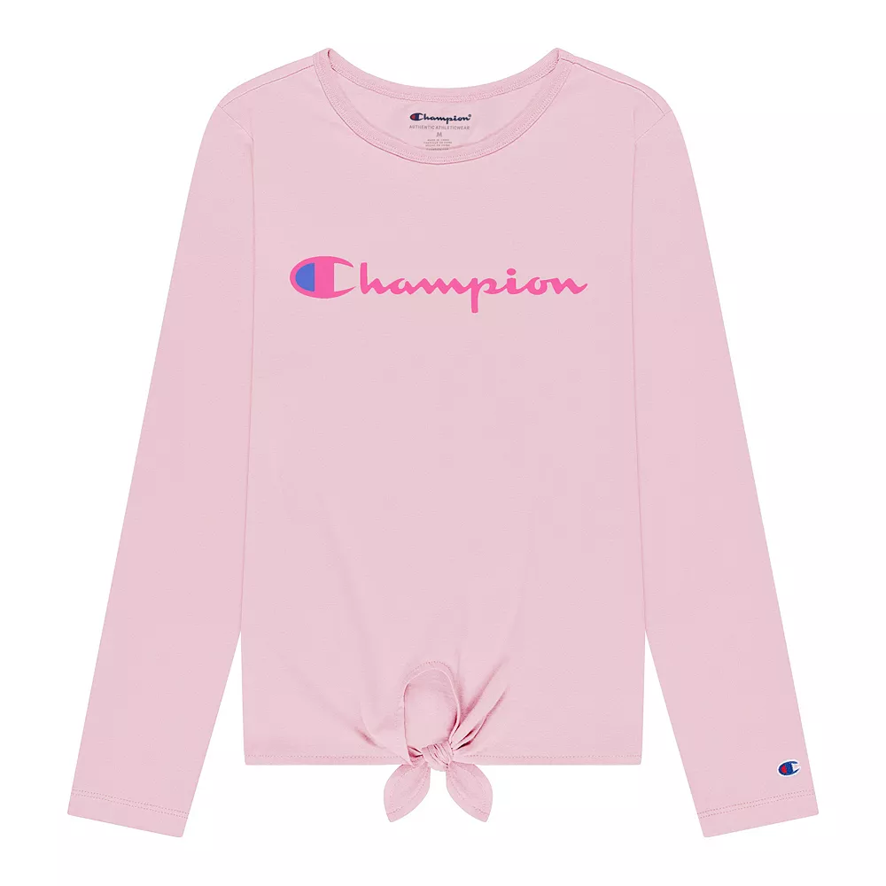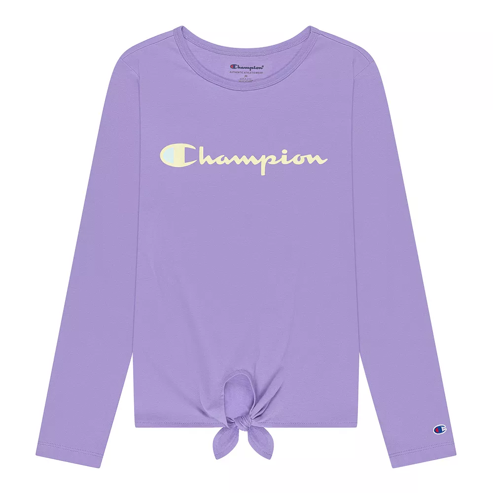 With a tie-front design and classic Champion styling, this girls’ tee is an athleisure essential.
