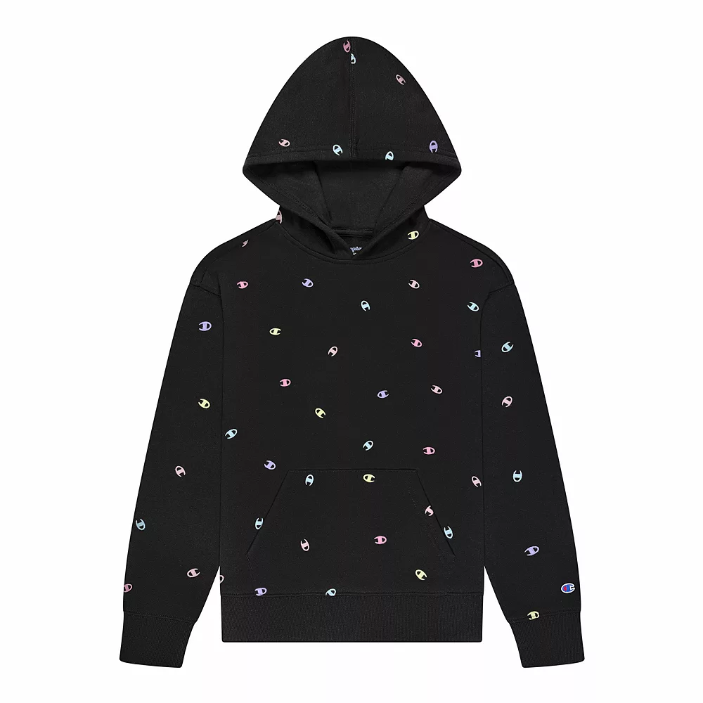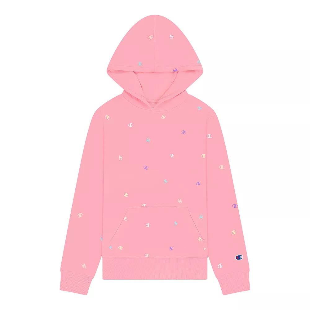 Cozy and cute, this girls’ fleece hoodie features an allover Champion logo print.
