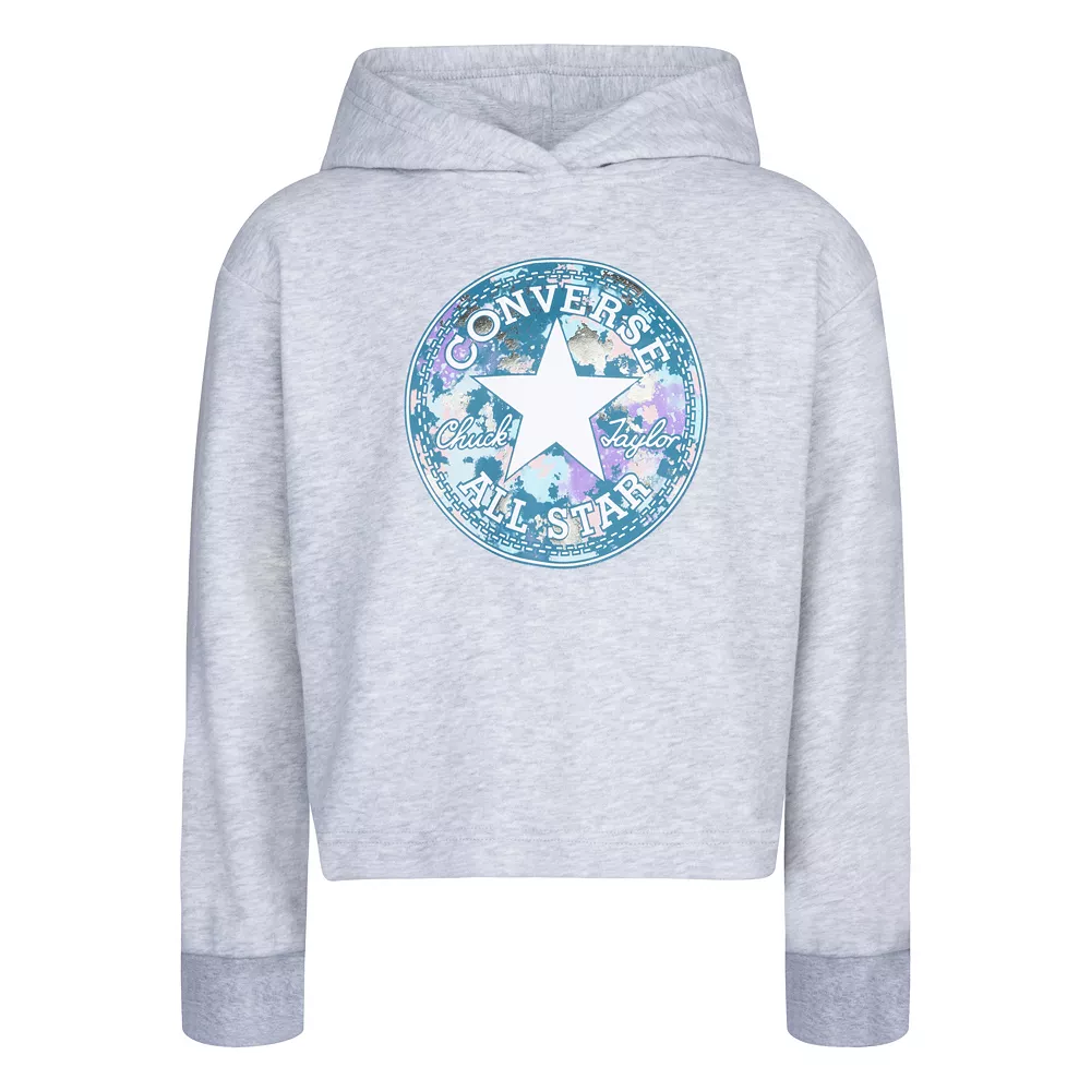 She’ll love rocking this super soft girls’ Converse paint splatter Chuck patch graphic hoodie.