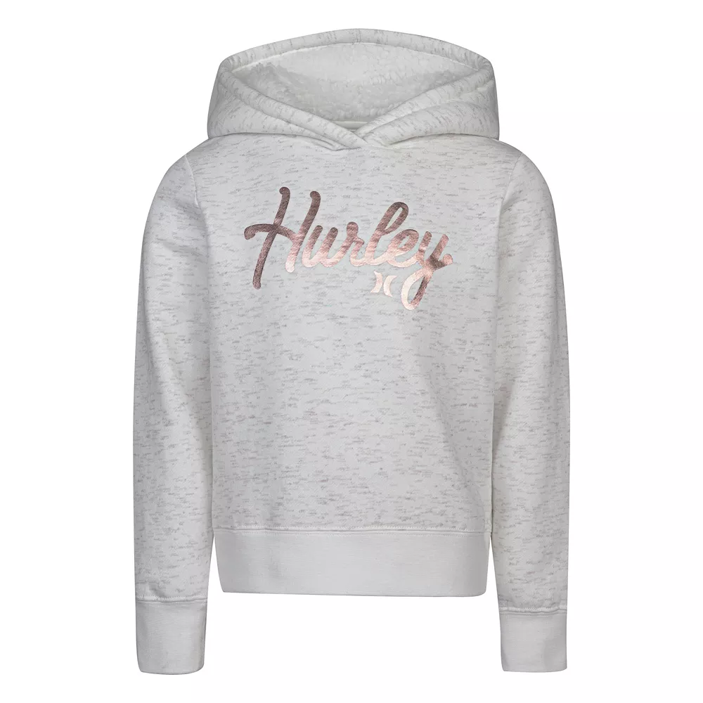- Warm lurex fleece. Cozy hood. Long sleeves. Ribbed hem and cuffs. Hurley logo at the chest. Confetti print.