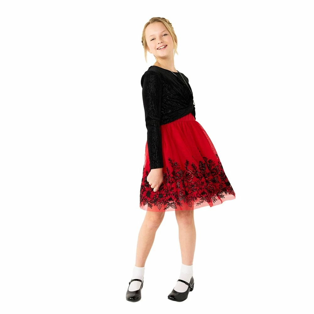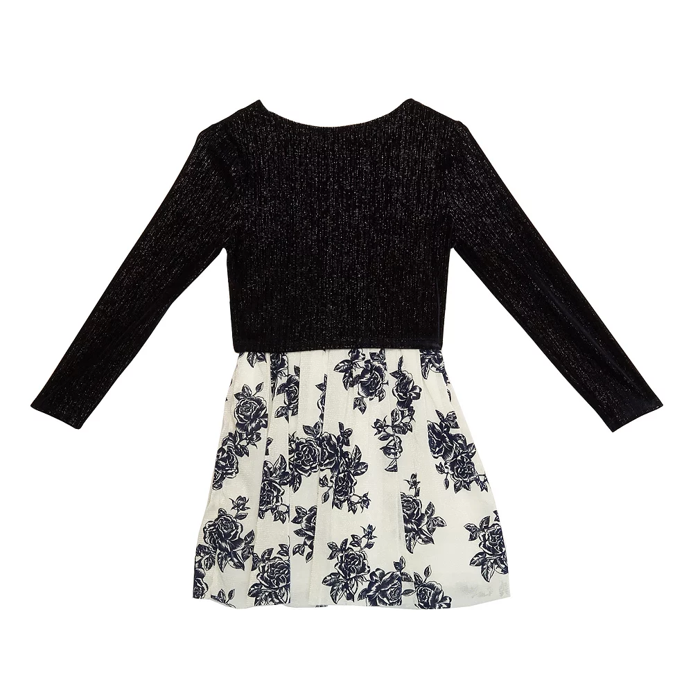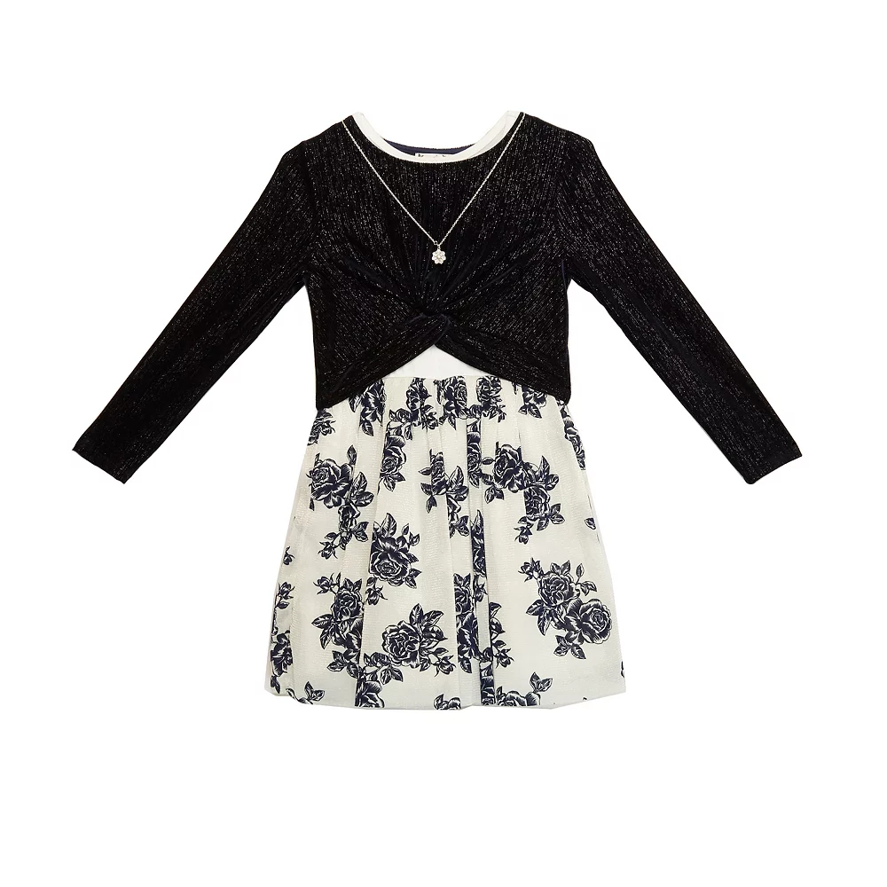 She’ll be a show stopper in this chic babydoll dress and popover top, complete with matching necklace from Knit Works.