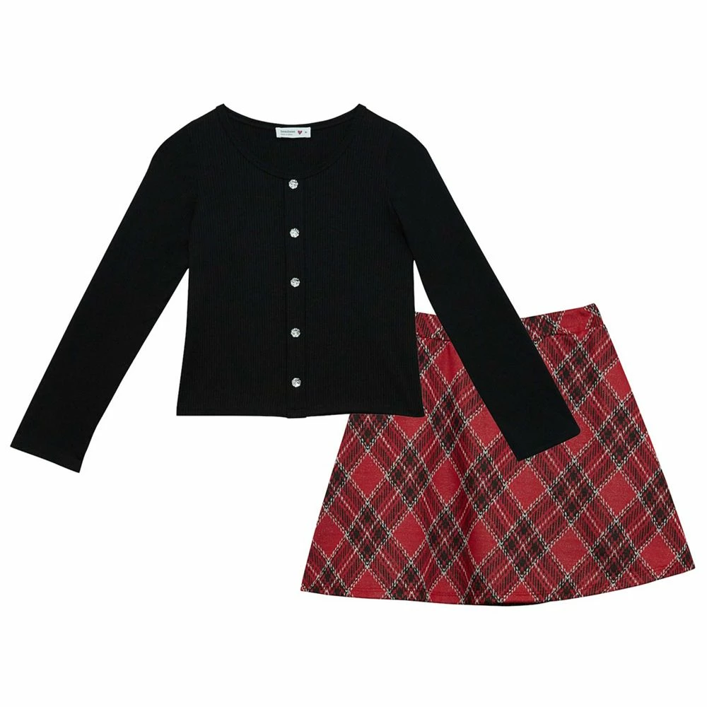 Keep her classic and chic with this button top and plaid scooter outifit from Knit Works.