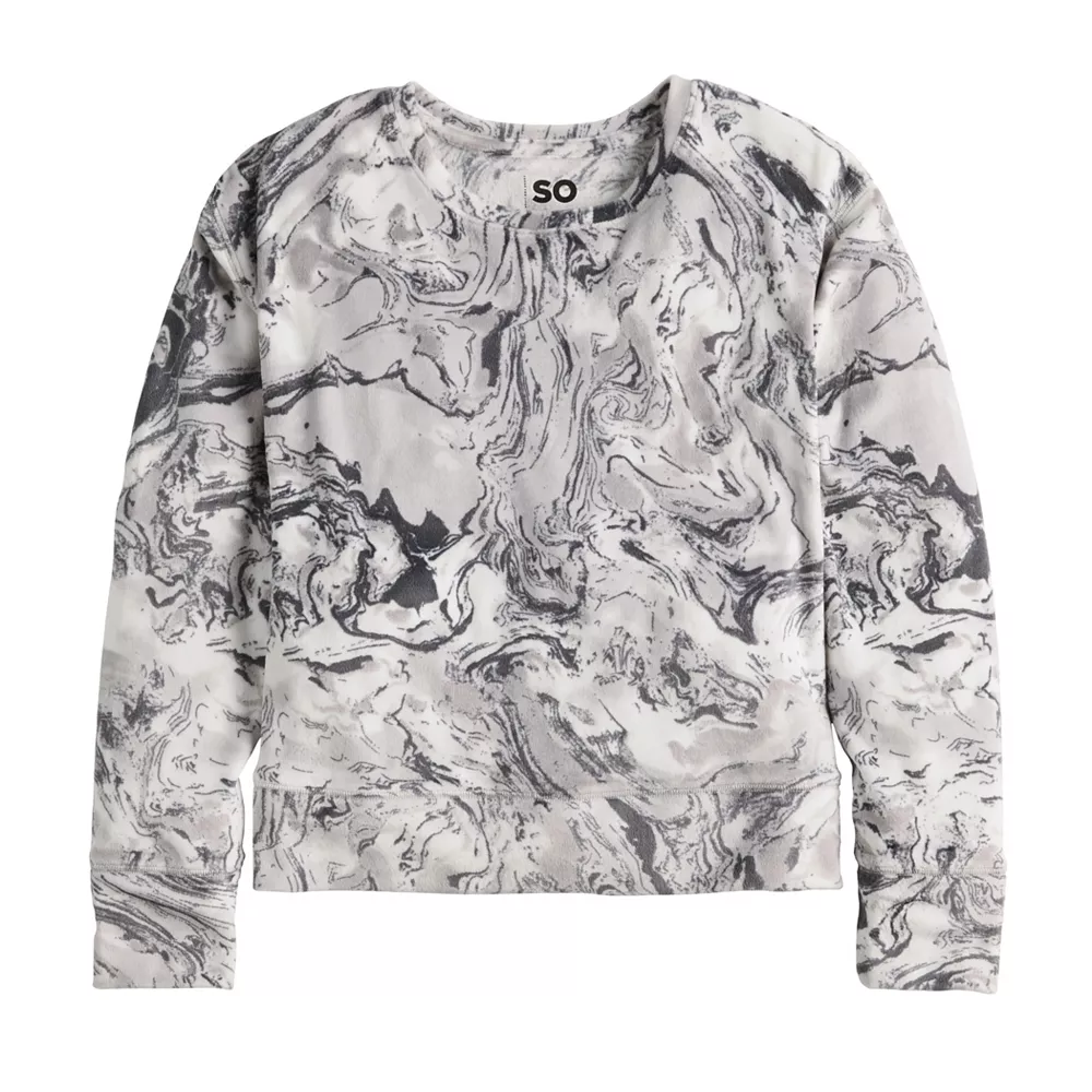This comfy and stylish girls’ SO Velour Pullover Crewneck is sure to be one of her new everyday favs.