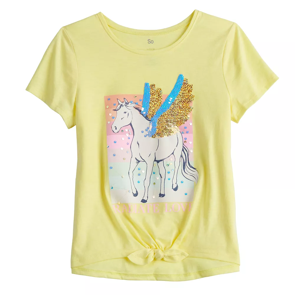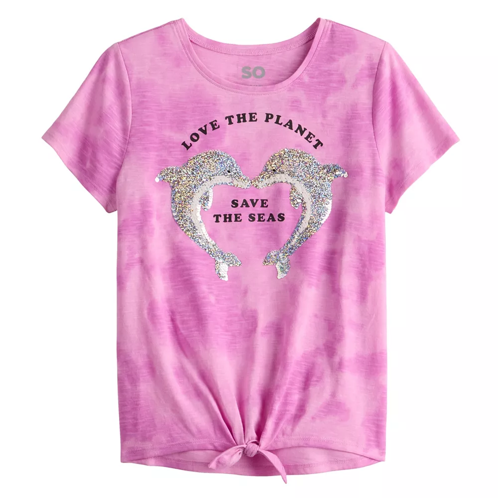Featuring a tie-front, she’ll love the eye-catching style and comfort of this girls’ SO top.