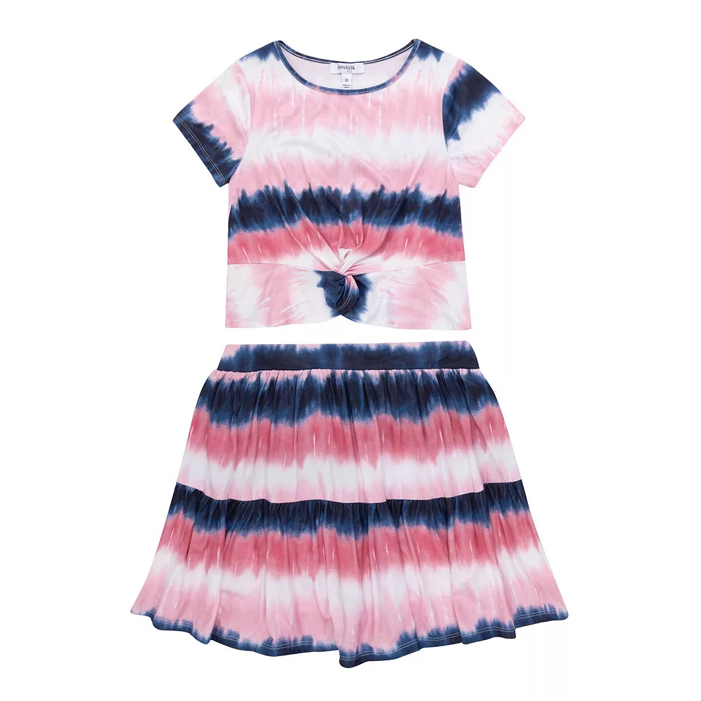She’ll feel groovy in this girls’ tie dyed top and skirt set from Speechless.