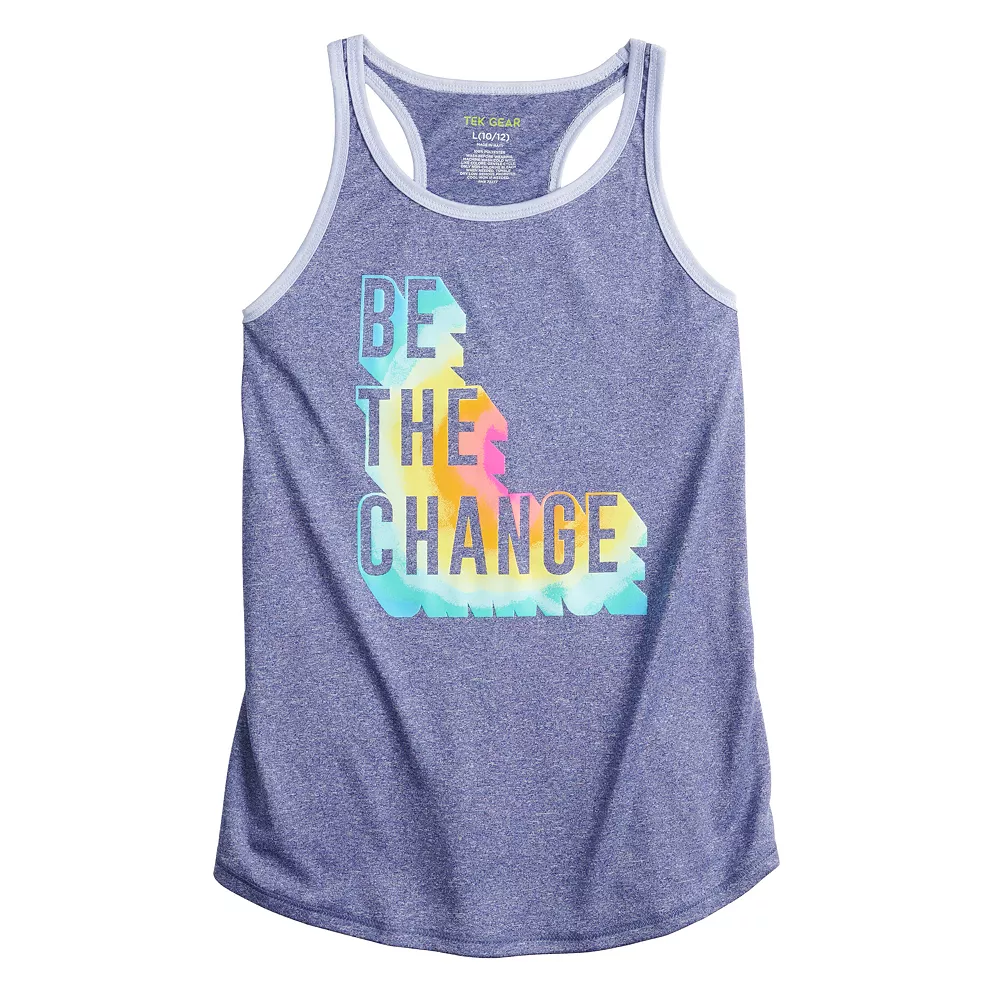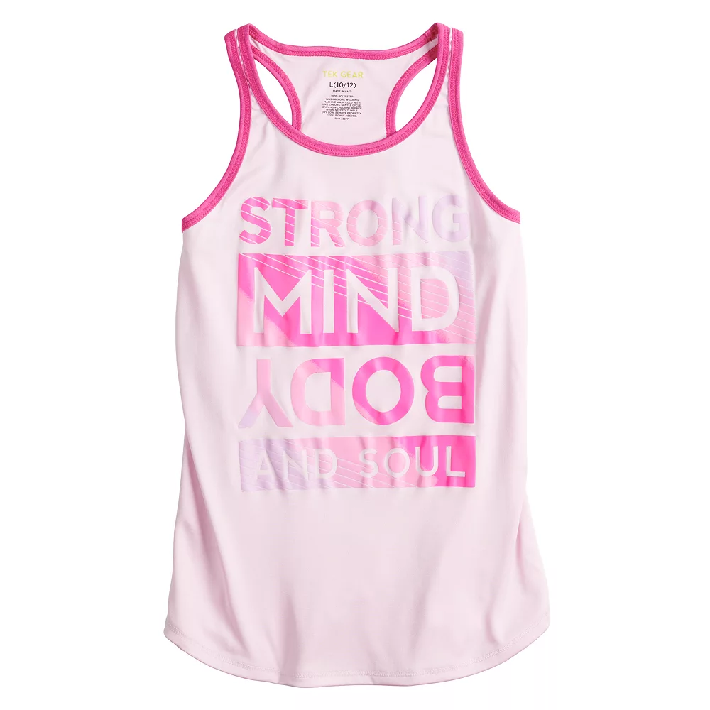 She’ll get a move on in this sporty Tek Gear girls’ tank top featuring a motivational graphic.