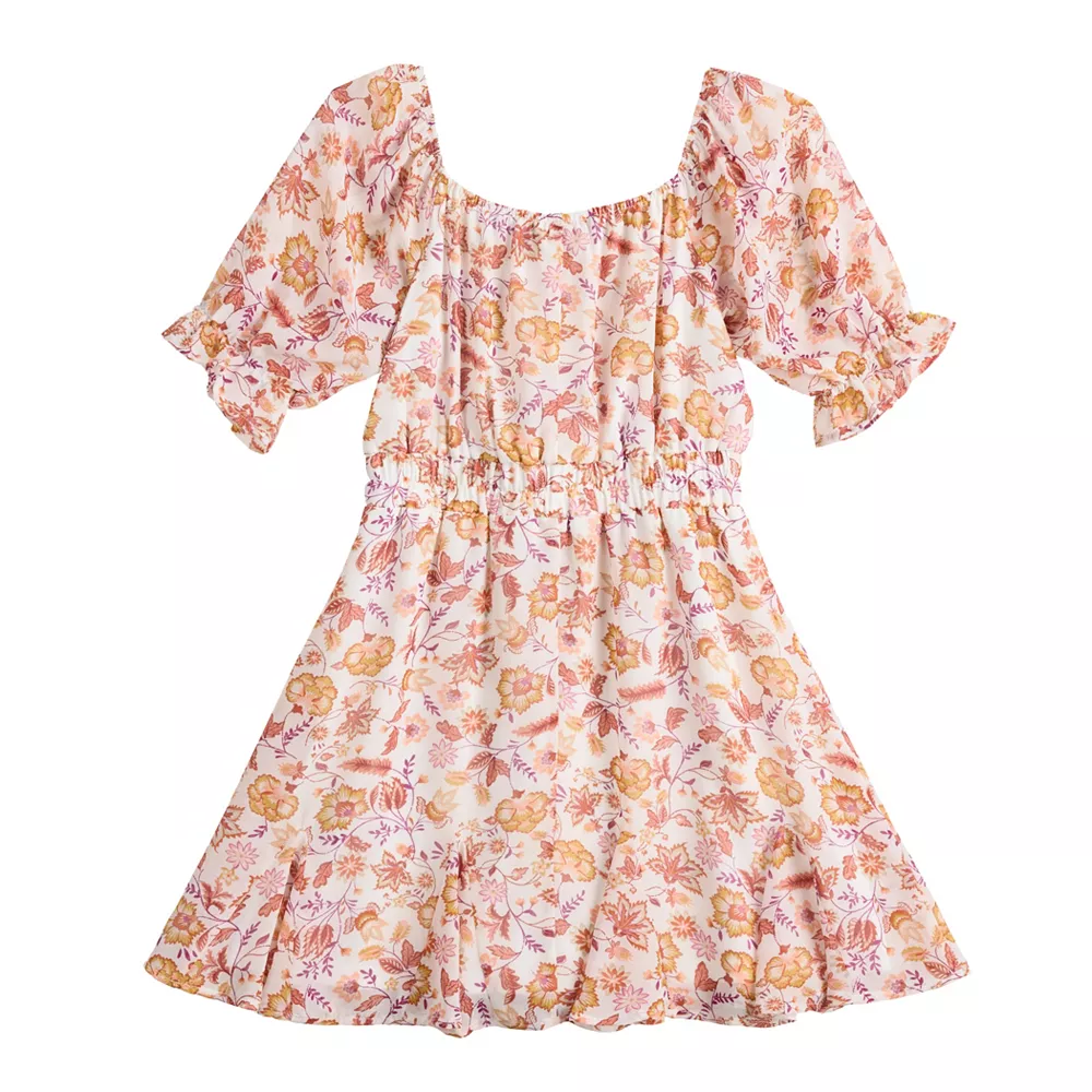 She’ll feel so boho-cute in this girls’ puff sleeve printed dress and necklace set from Three Pink Hearts.