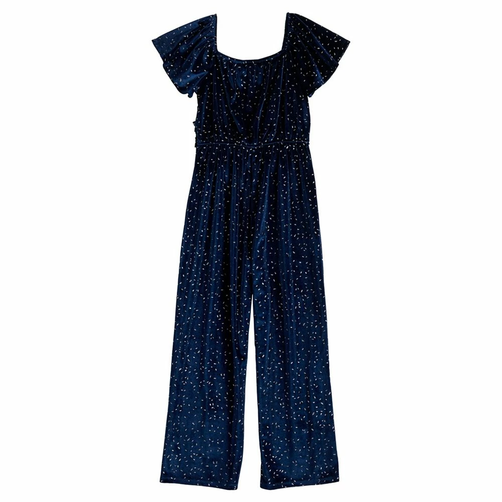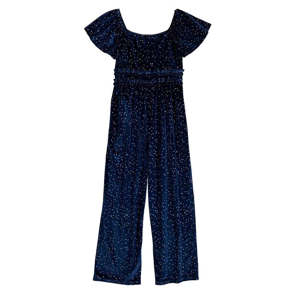 She’ll be the life of the party in this stunning velvet and glitter jumpsuit.