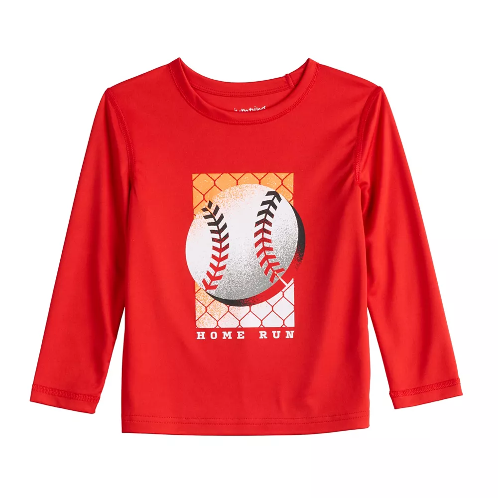 He’ll be ready to play in this toddler boys’ long sleeve active tee from Jumping Beans.