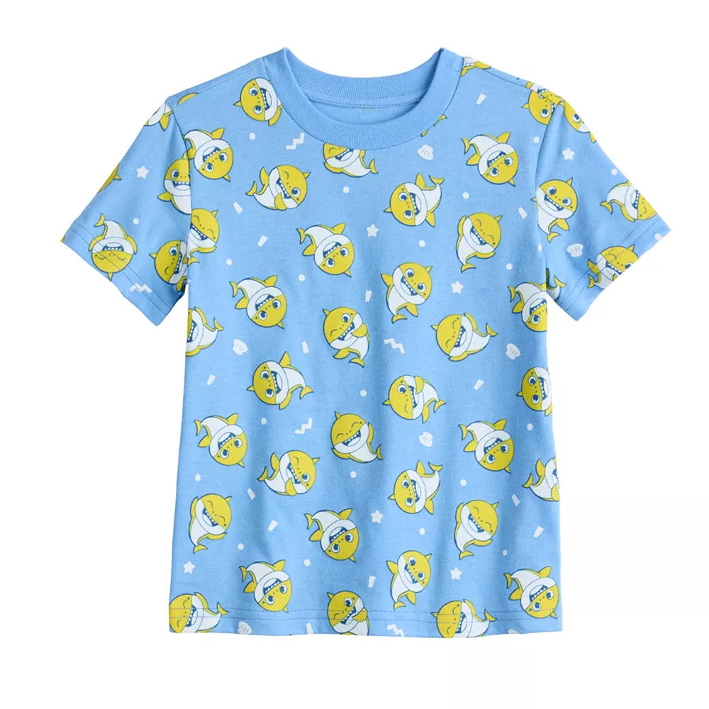 He’ll love showing off his favorite earworm in this toddler boys’ Baby Shark allover print tee from Jumping Beans.