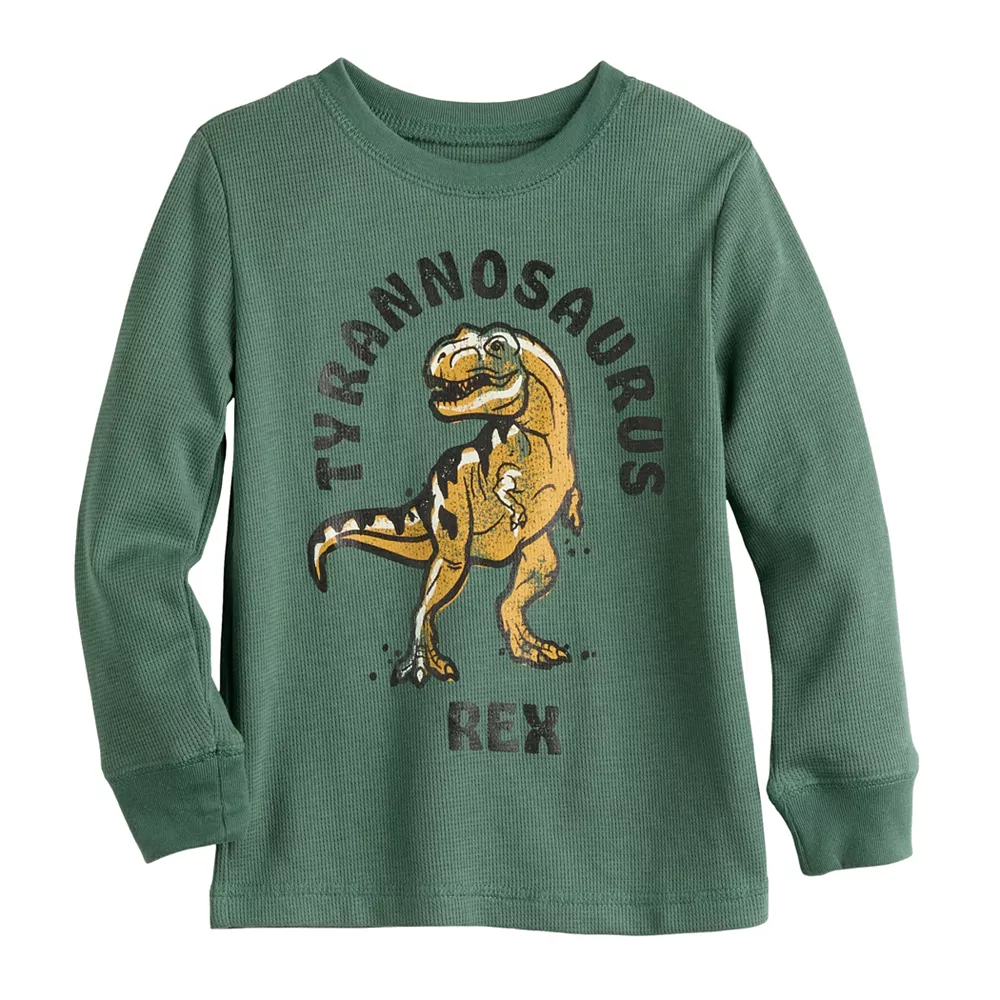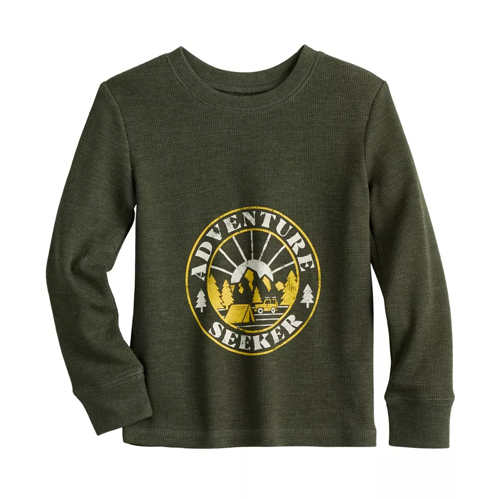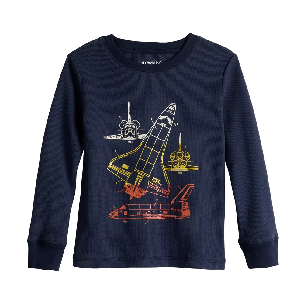 Your little guy will be ready to take on cooler temperatures in style with this toddler boys’ thermal graphic tee from Jumping Beans.