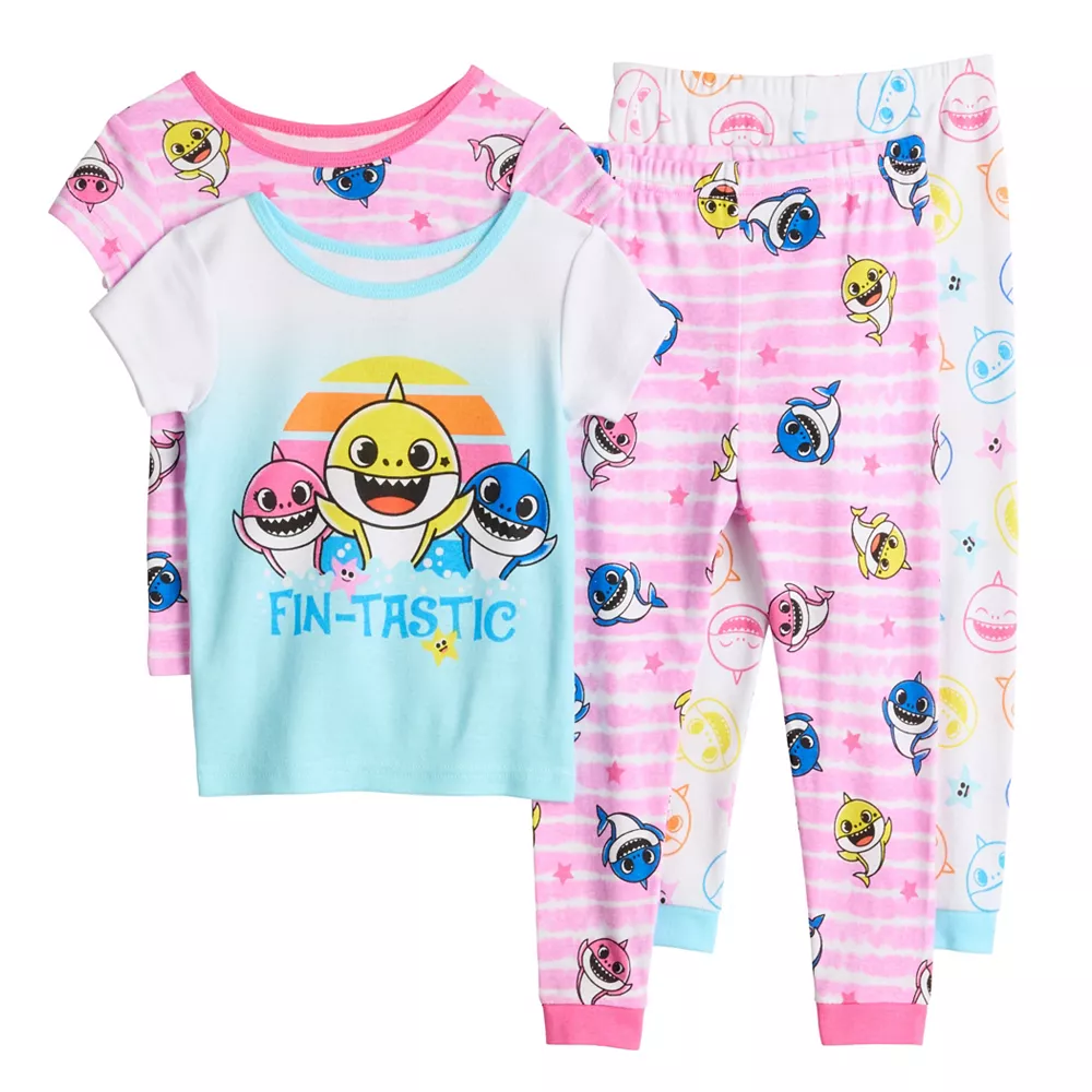 Your little lady will love this fun toddler girls’ Baby Shark 4-piece pajama set.