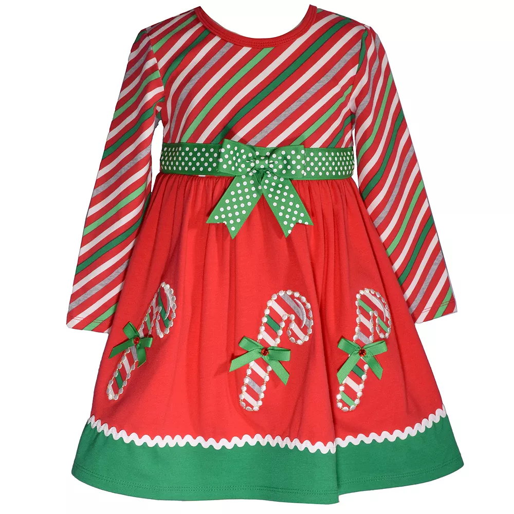 Give her a festive look for any holiday event with this girls’ Bonnie Jean candy cane dress.
