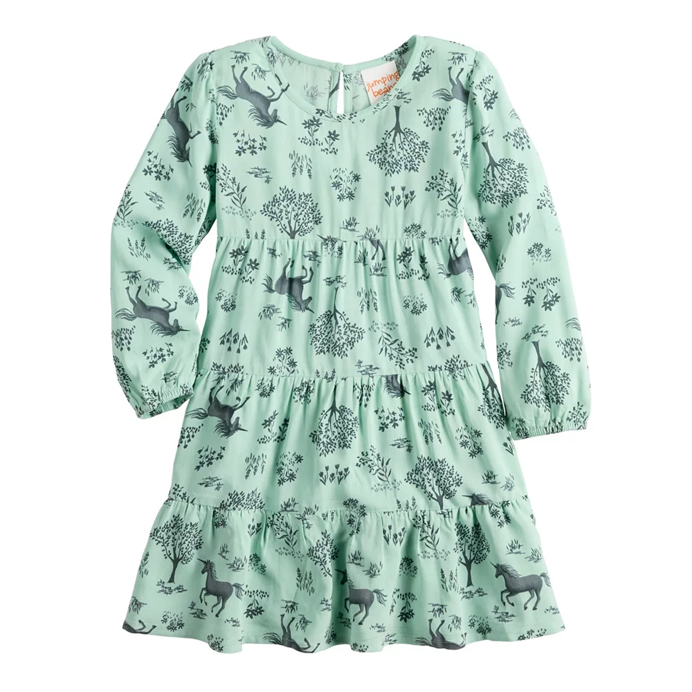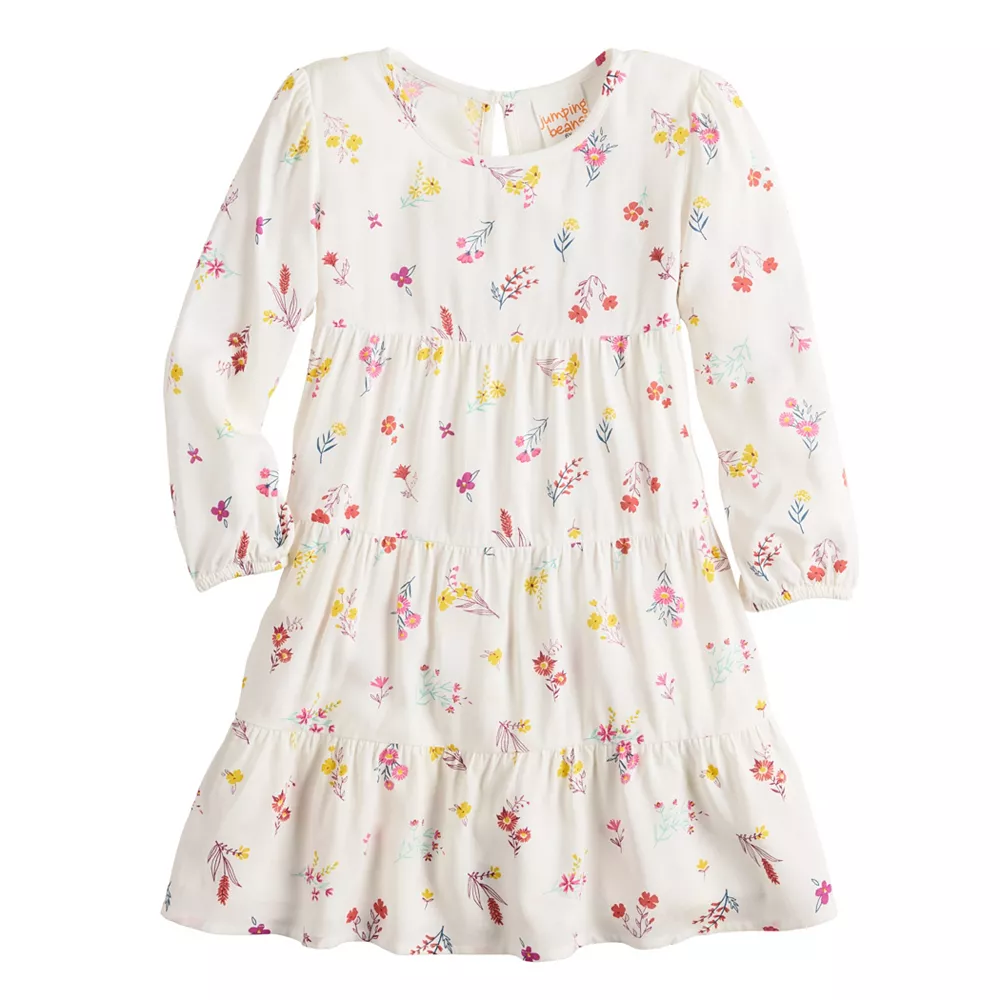 Add a touch of boho-chic flair to your little lady’s wardrobe with this toddler girls’ printed tiered hem dress from Jumping Beans.