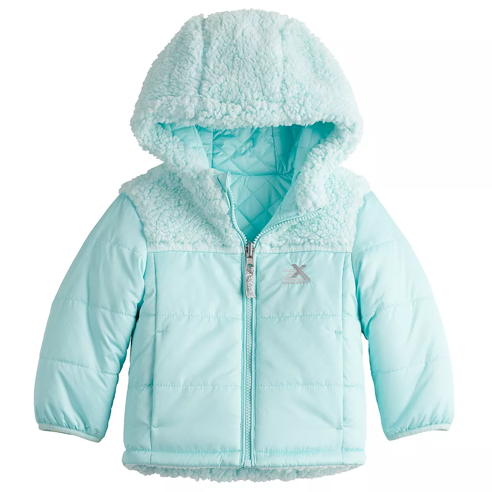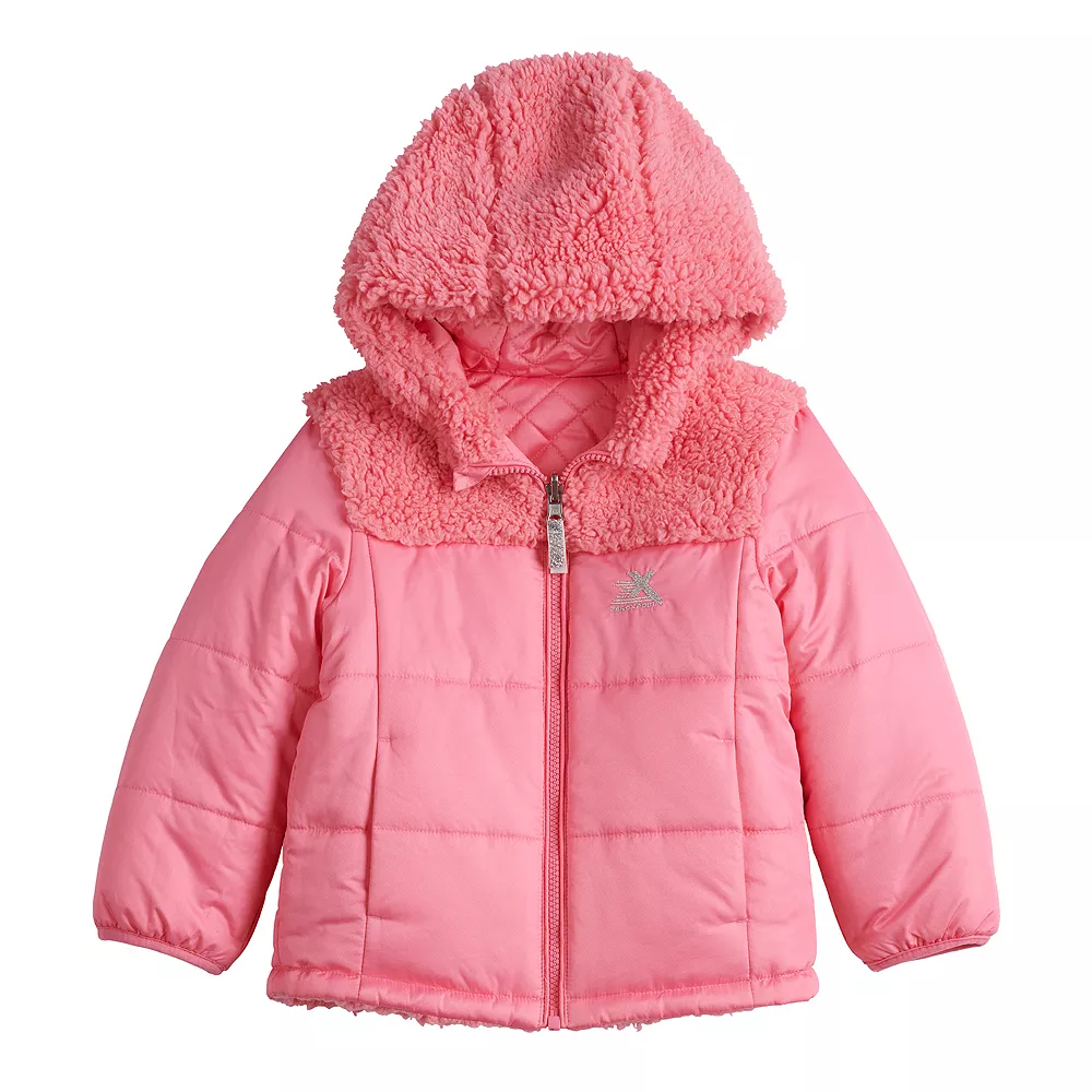 She’ll be cute and warm in this reversible poppy girls’ jacket by ZeroXposur.